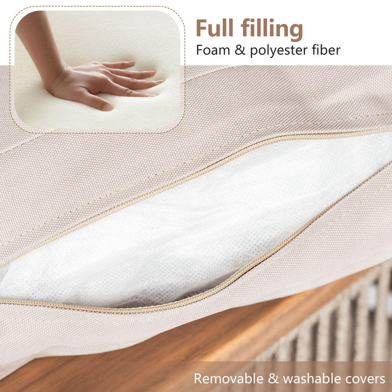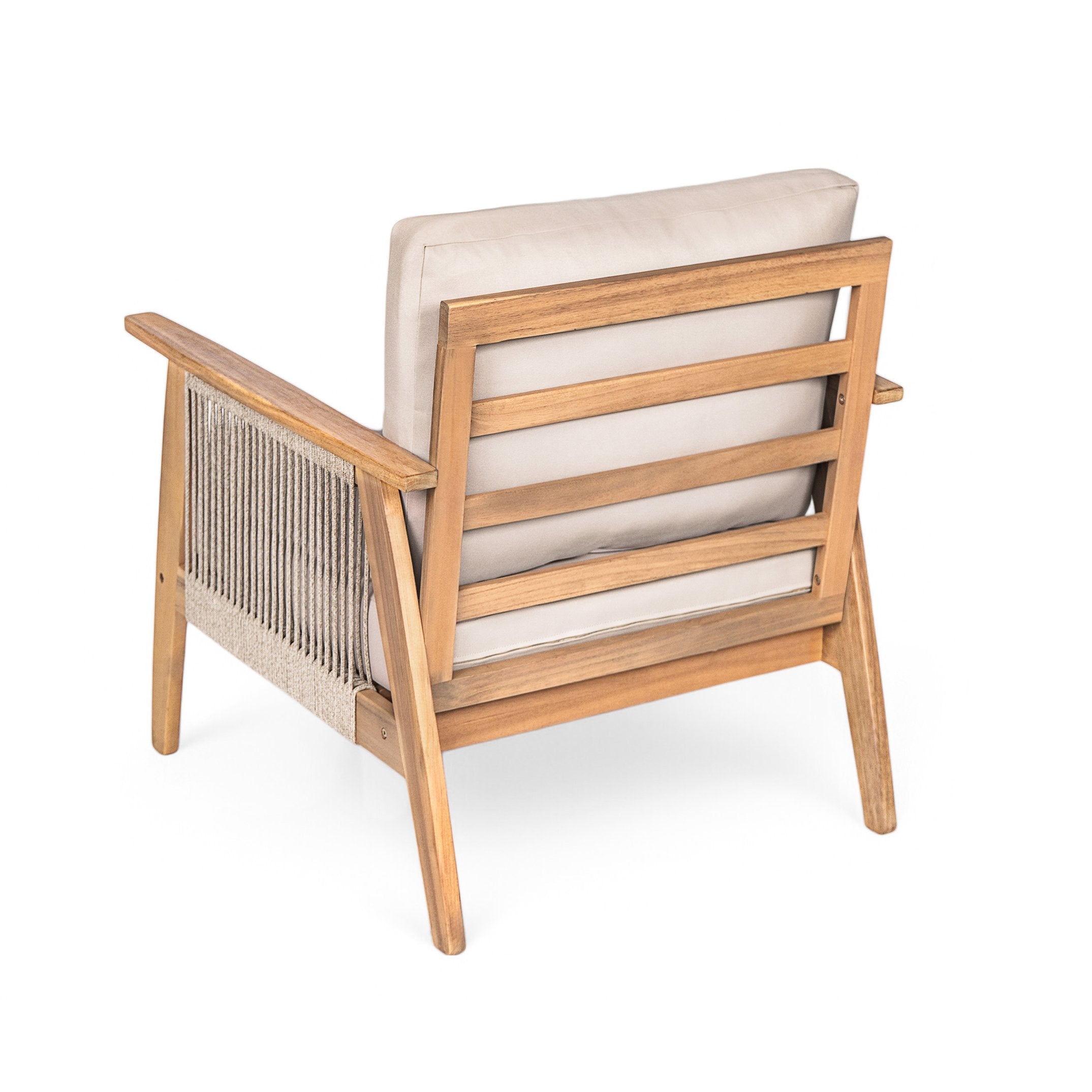 - Materials: Solid acacia wood frame for strength and weather resistance; intricately handwoven rope detailing for a distinctive, durable look; waterproof, non-porous fabric cushion covers with high-resilience sponge cores for comfortable, supportive seating.