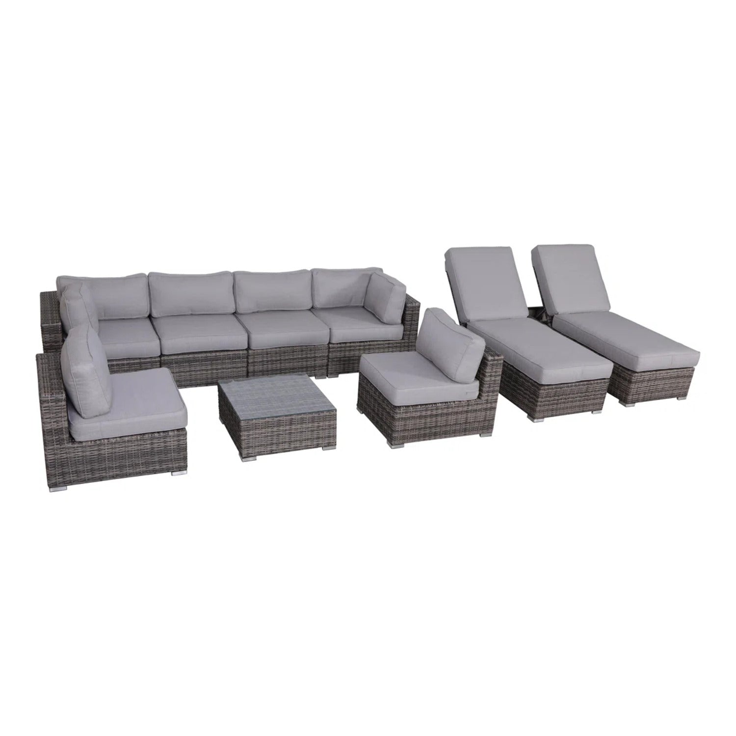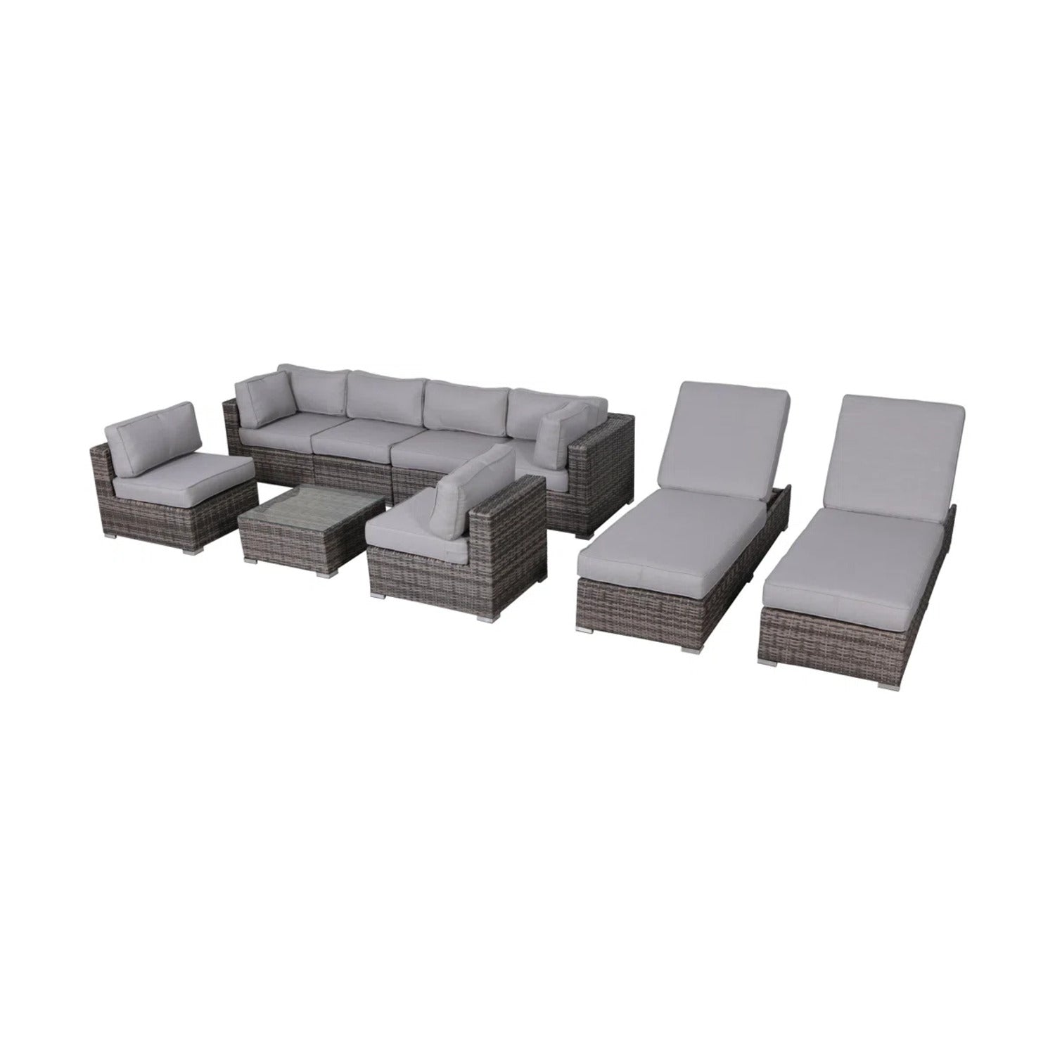 - Complete 9-Piece Set – Includes 1 sectional, 1 sofa, 2 armless chairs, 2 chaise loungers, and 1 coffee table.