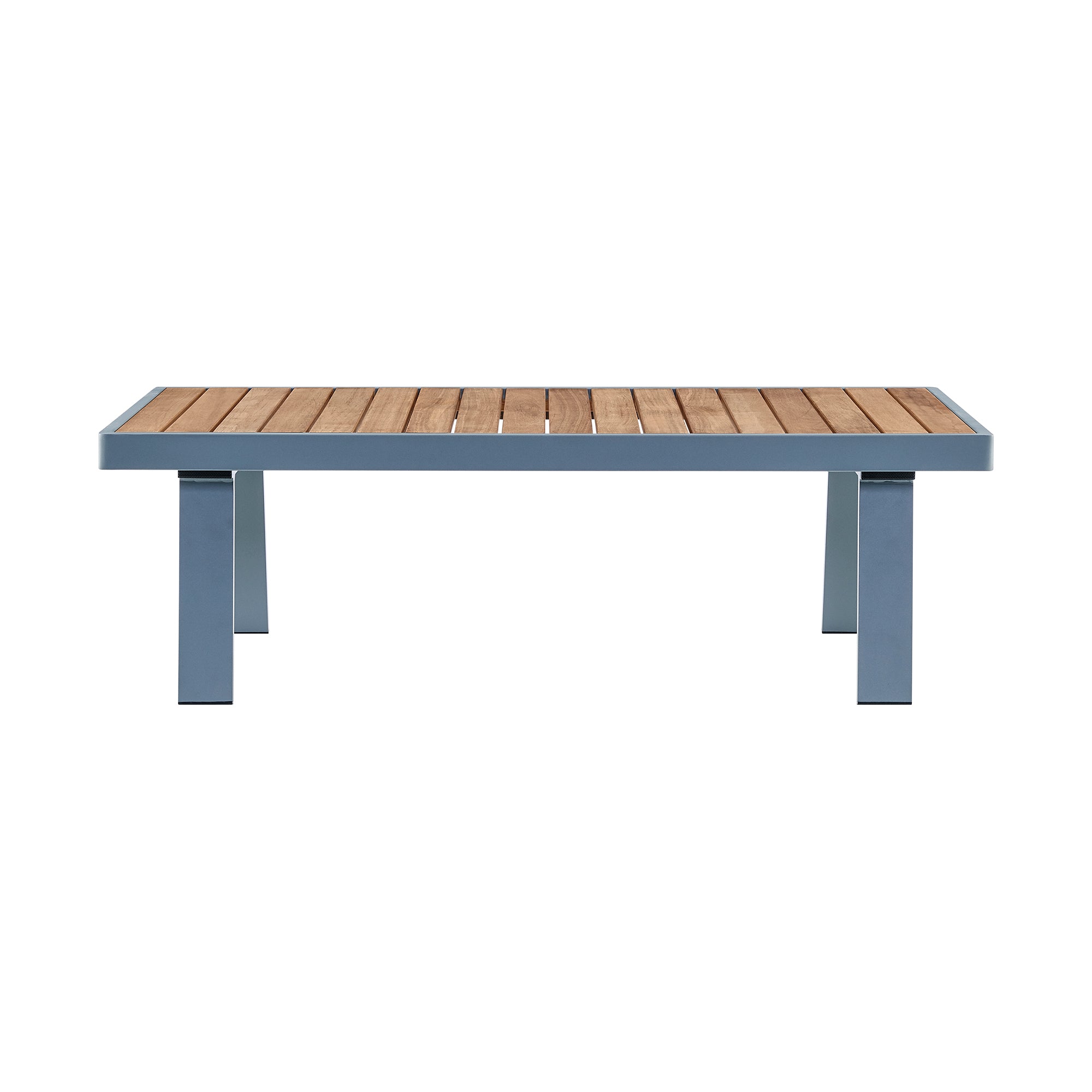 - Construction: Powder-coated gray aluminum frame with teak wood accents for a contemporary, weather-resistant look.