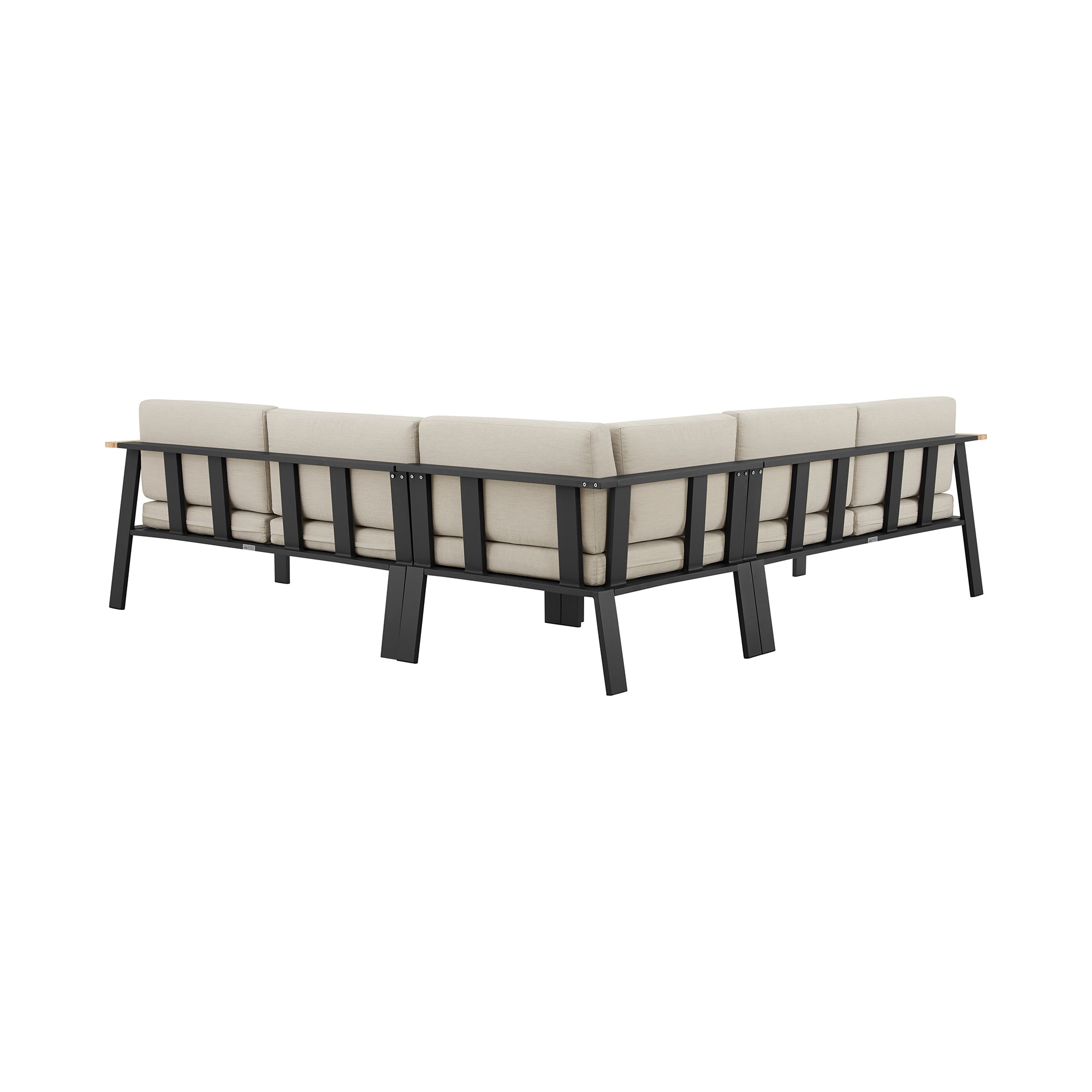Bring relaxed, modern style to your outdoor living space with the Ivano Outdoor Patio Sectional Set. Designed for comfortable lounging and built to withstand the elements, this modular set pairs lightweight aluminum framing with teak accents and durable olefin cushions for a refined, low-maintenance ensemble that suits patios, decks, and sunrooms.