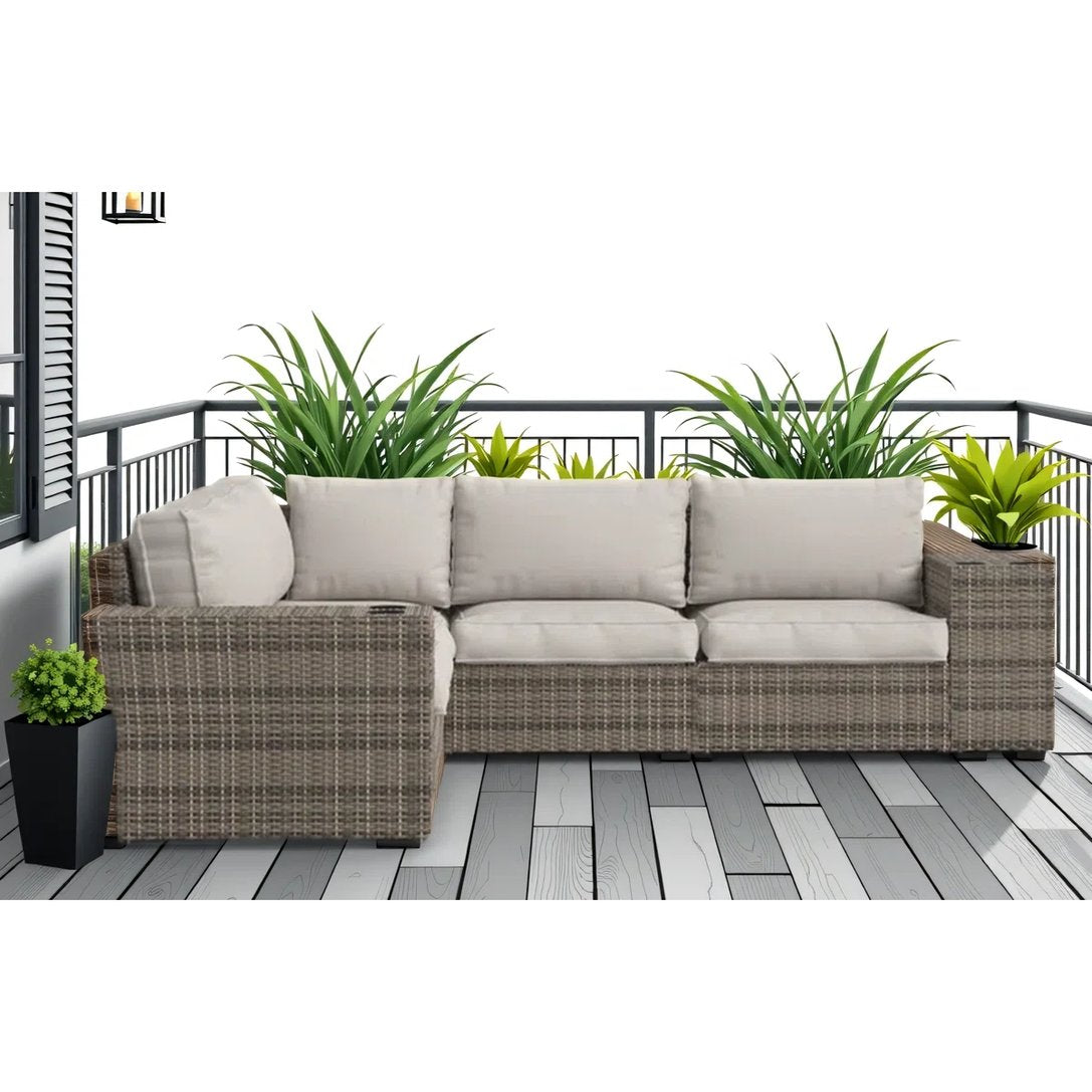 Create a comfortable, coastal-inspired outdoor lounge with this fully assembled 102" wide reversible patio sectional. Built to withstand the elements and designed for everyday comfort, it offers plush seating, practical features like integrated cup holders, and a flexible L-shaped layout that adapts to your space—no assembly required.