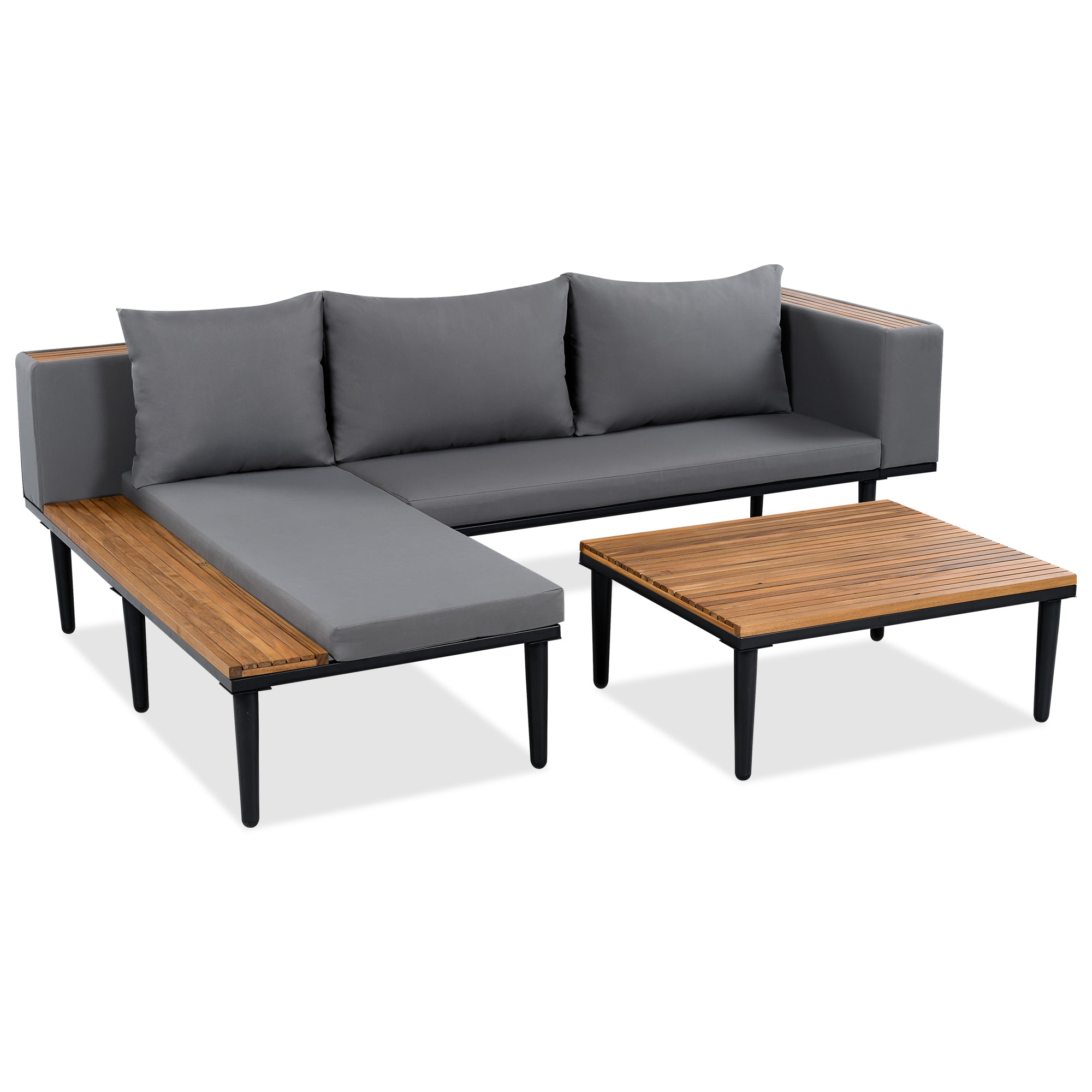 - Functional details: Designed for convenience, the extended sofa includes a solid acacia wood side table, providing extra space for drinks, books, or décor. Perfect for lounging with everything within reach.