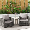 Bring comfort and style to your outdoor living area with this durable two-person rattan seating set. Crafted with weather-resistant PE rattan over a sturdy steel frame, the compact chairs deliver supportive seating, bold color contrast, and versatile placement options for patios, balconies, gardens, poolside areas, and more. Each chair ships separately and is designed for easy assembly and low-maintenance care so you can enjoy outdoor relaxation with confidence.