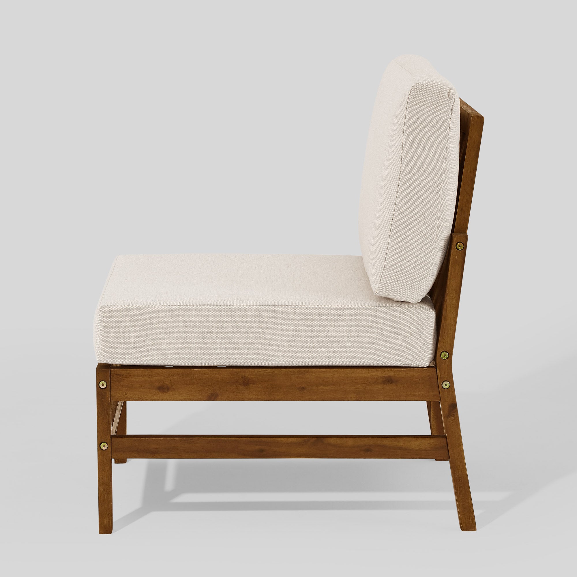 Bring warm, contemporary styling to your indoor or covered outdoor living space with this dark brown acacia wood chevron armless sectional. Thoughtfully crafted from responsibly harvested solid acacia and durable polyester fabric, the set pairs clean, modern lines with subtle natural character—knots and grain variations—so each piece is unique. Cushions are weather-resistant for low-maintenance comfort, and the included coffee table completes a cohesive, functional arrangement for lounging and entertaining.