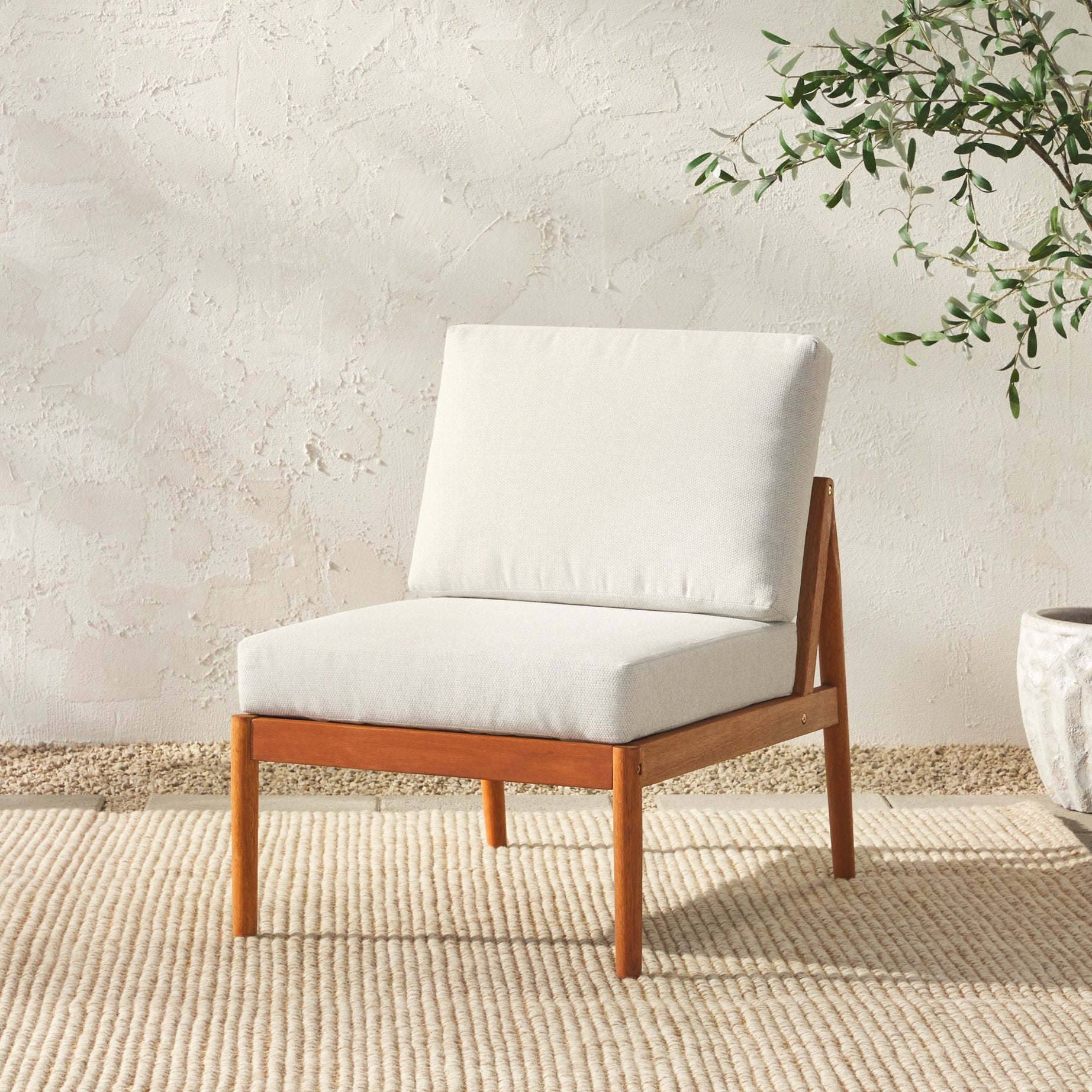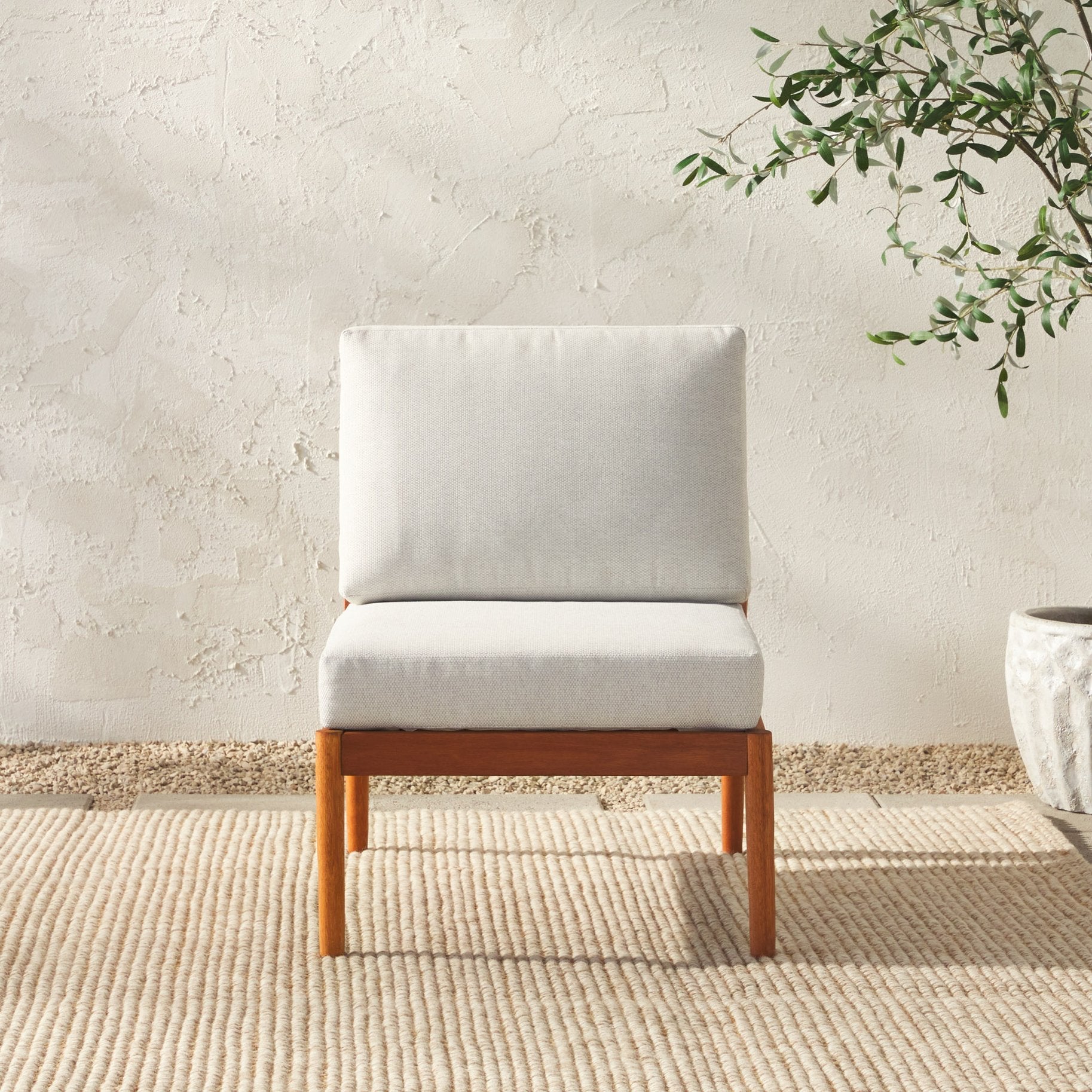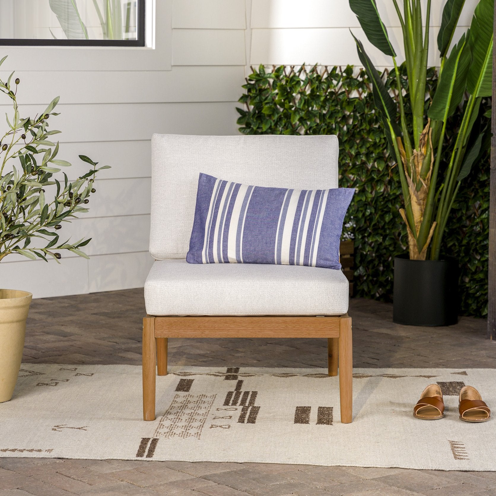 Refresh your outdoor living space with this modern spindle-style armless sectional, featuring clean lines and a warm natural finish. Crafted for both style and durability, it combines responsibly sourced eucalyptus wood with weather-resistant linen fabric to create a comfortable, low-maintenance seating option that complements contemporary patios, decks, and sunrooms.