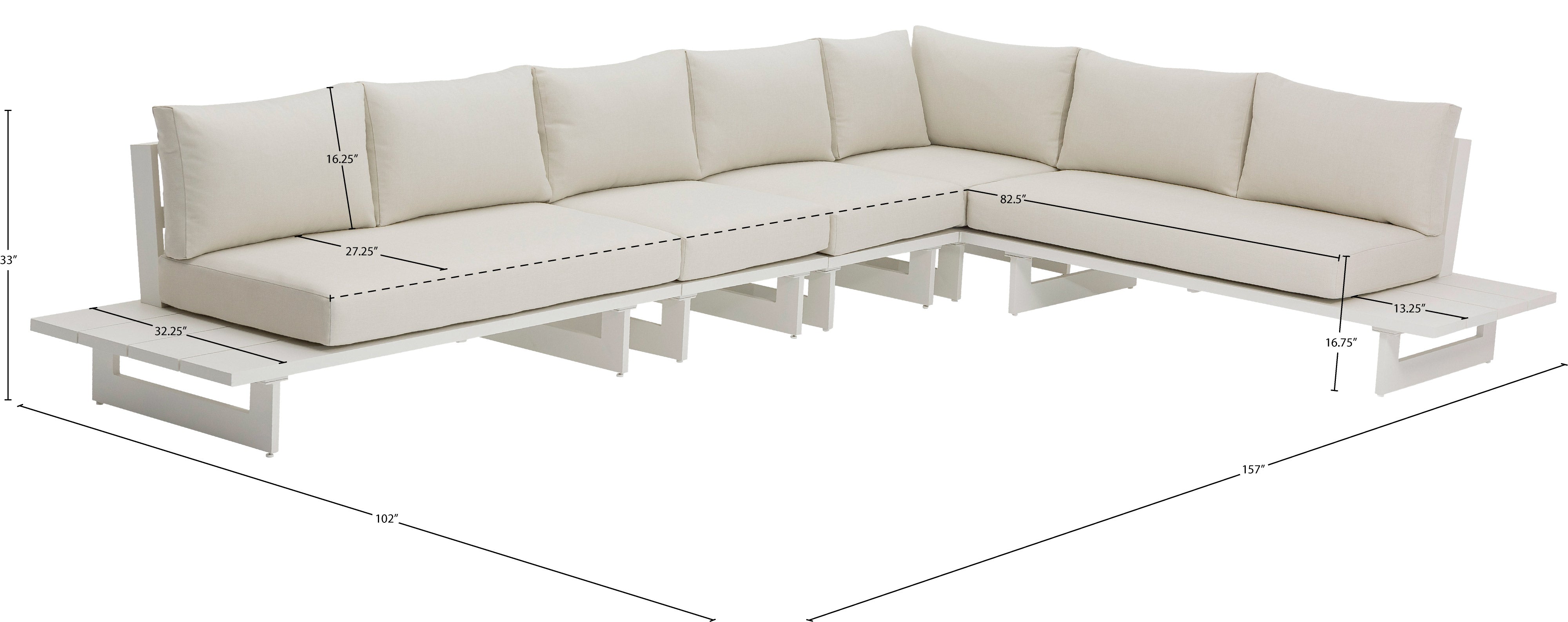 - Dimensions: 337Cream-Sec2B Maldives Cream Water Resistant Fabric Outdoor Patio Modular Sectional - 157" W x 102" D x 33" H