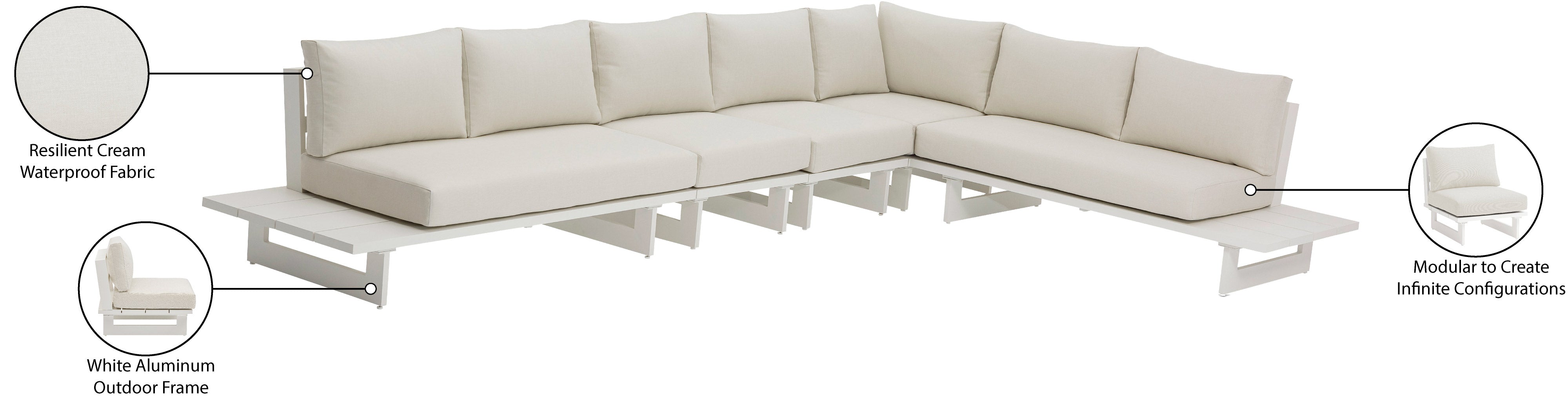 - Material: 337Cream-Sec2B Maldives Cream Water Resistant Fabric Outdoor Patio Modular Sectional - Aluminum / Water Resistant Fabric / Foam with White