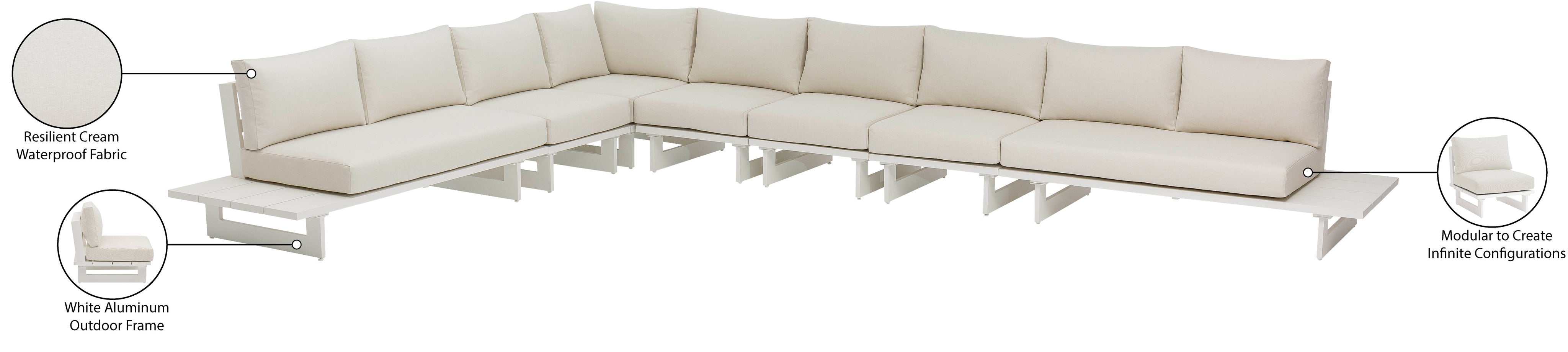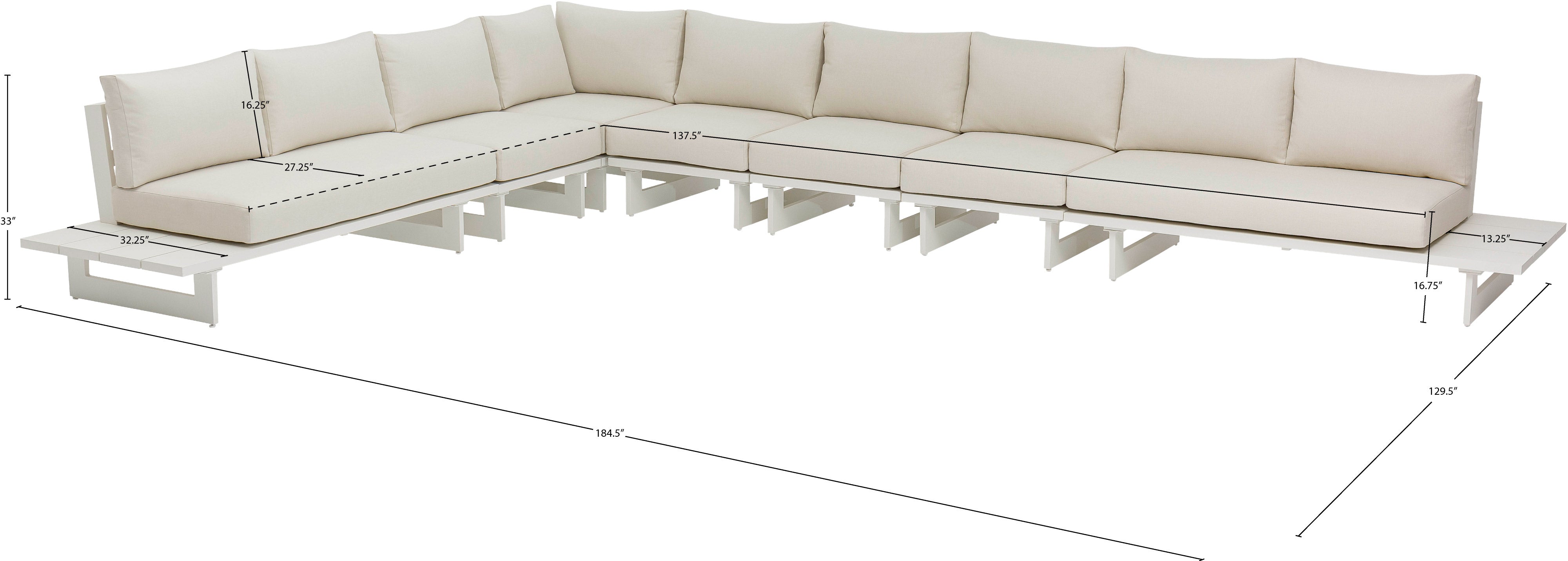 - Dimensions: 337Cream-Sec4B Maldives Cream Water Resistant Fabric Outdoor Patio Modular Sectional - 184.5" W x 129.5" D x 33" H