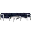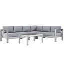 Create a relaxed, stylish outdoor lounge area with this durable 5-piece aluminum sectional set designed for everyday use and entertaining. The Shore collection combines a lightweight anodized brushed aluminum frame with all-weather canvas fabric and plush cushions, offering a contemporary profile that’s easy to maintain and built to withstand sun, rain, and frequent use.