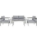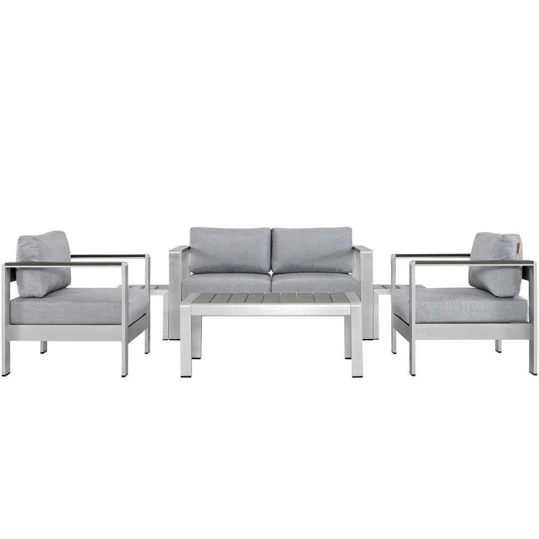 - Modern Outdoor Patio Collection All-Weather Canvas Cushions Anodized Aluminum Frame Non-Marking Foot Caps Machine Washable Cushion Assembly Required