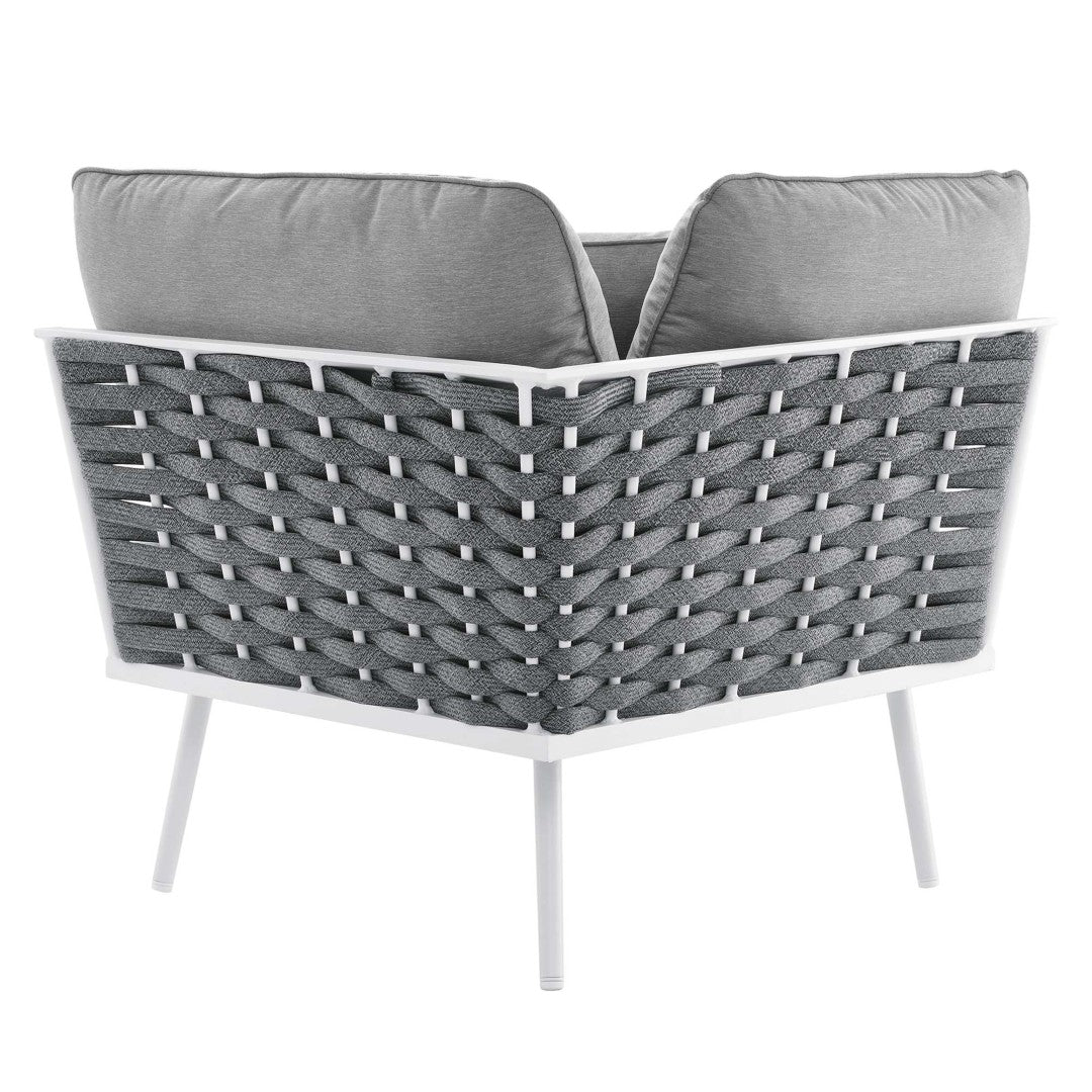 Enjoy effortless outdoor entertaining with the Stance 4-piece outdoor sectional set, a modern, modular collection designed for comfort, durability, and stylish flexibility. Crafted with powder-coated aluminum frames, woven polyester rope backs, slatted synthetic wood tabletops, and plush water-resistant cushions, this set provides a relaxed, weather-ready lounge experience that can be rearranged to suit gatherings big or small.