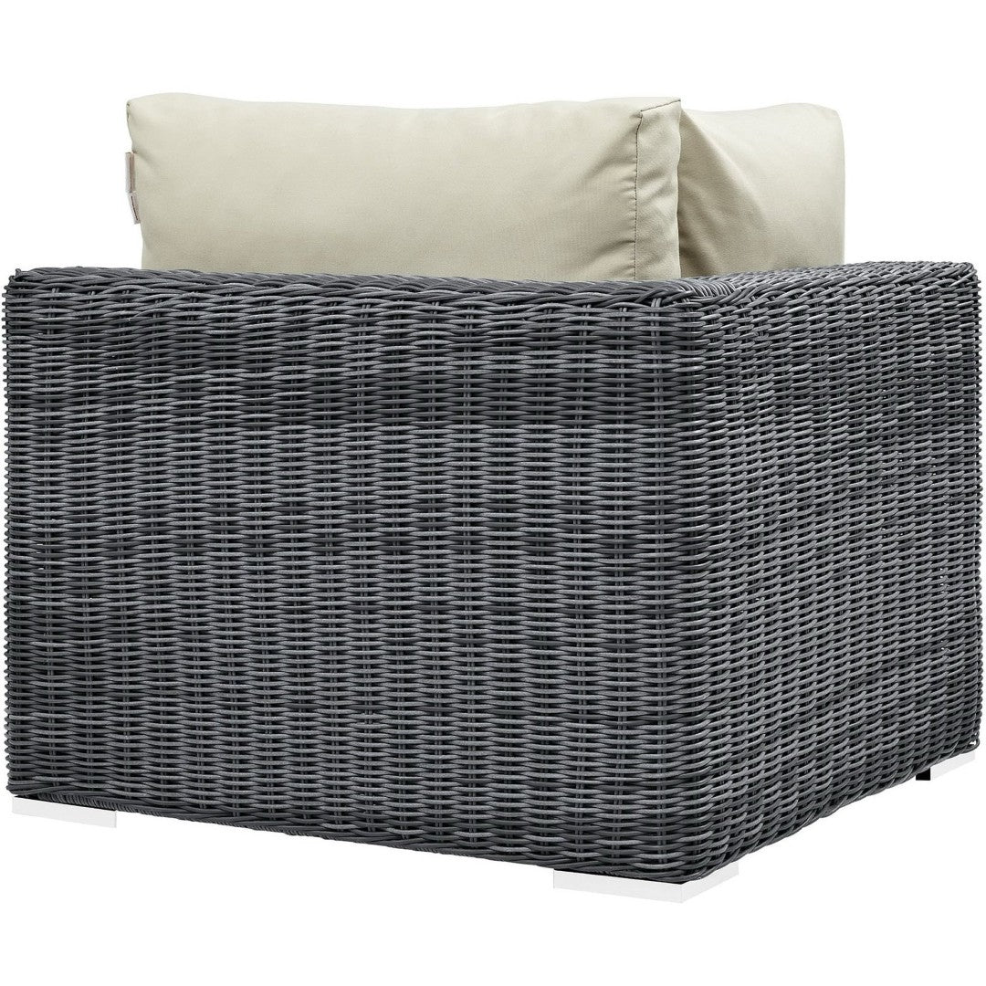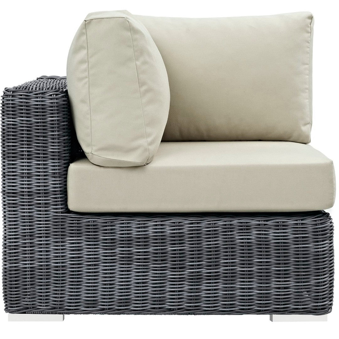 Bring modern comfort and durable style to your outdoor living space with this corner piece from the Summon outdoor sectional collection. Expertly crafted for patios, poolside lounges, and backyard entertaining, the piece combines a two-tone synthetic rattan weave, a powder-coated aluminum frame, and plush Sunbrella® performance cushions to deliver lasting weather resistance, UV protection, and refined contemporary aesthetics.