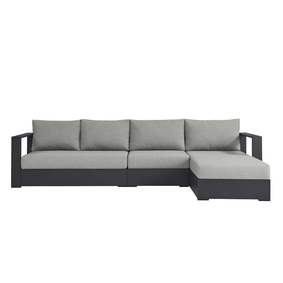 Refresh your outdoor living area with the Tahoe 3-piece sectional—designed to blend modern lines with durable, weather-ready construction for comfortable lounging and entertaining. Built from powder-coated aluminum for lasting rust resistance and paired with thick, removable cushions covered in UV- and water-resistant fabric, this modular set adapts to your patio, deck, or poolside while protecting surfaces with non-marking foot glides.