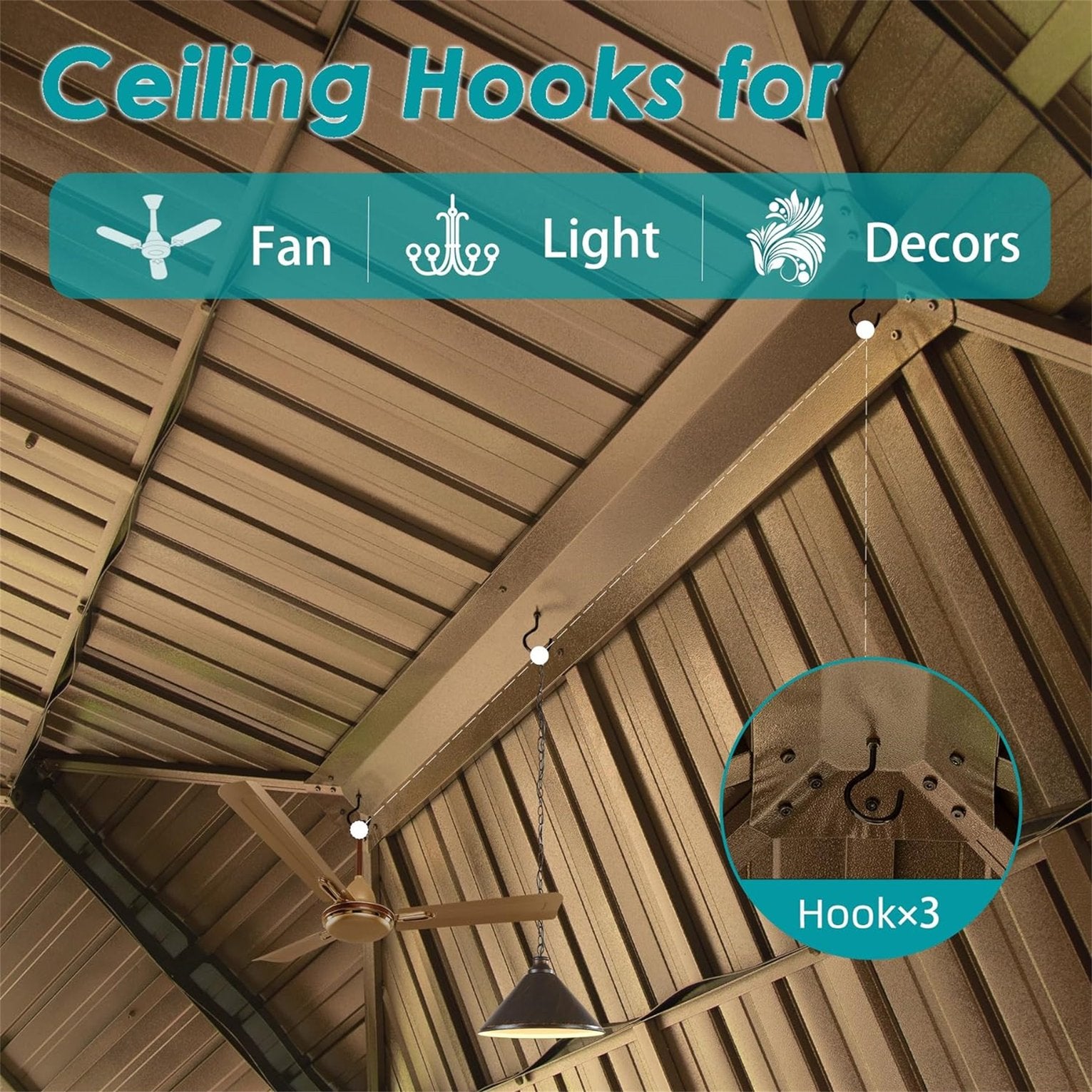- Durable construction: Powder-coated aluminum frame and galvanized steel double roof resist rust, corrosion, fading, and seasonal weather for long service life.