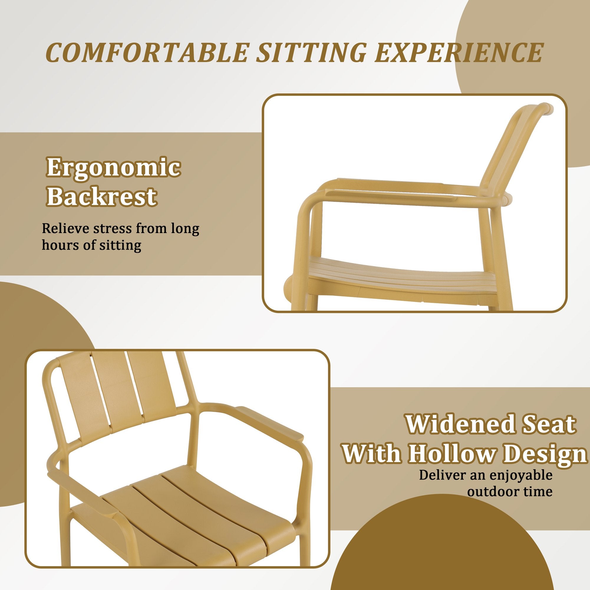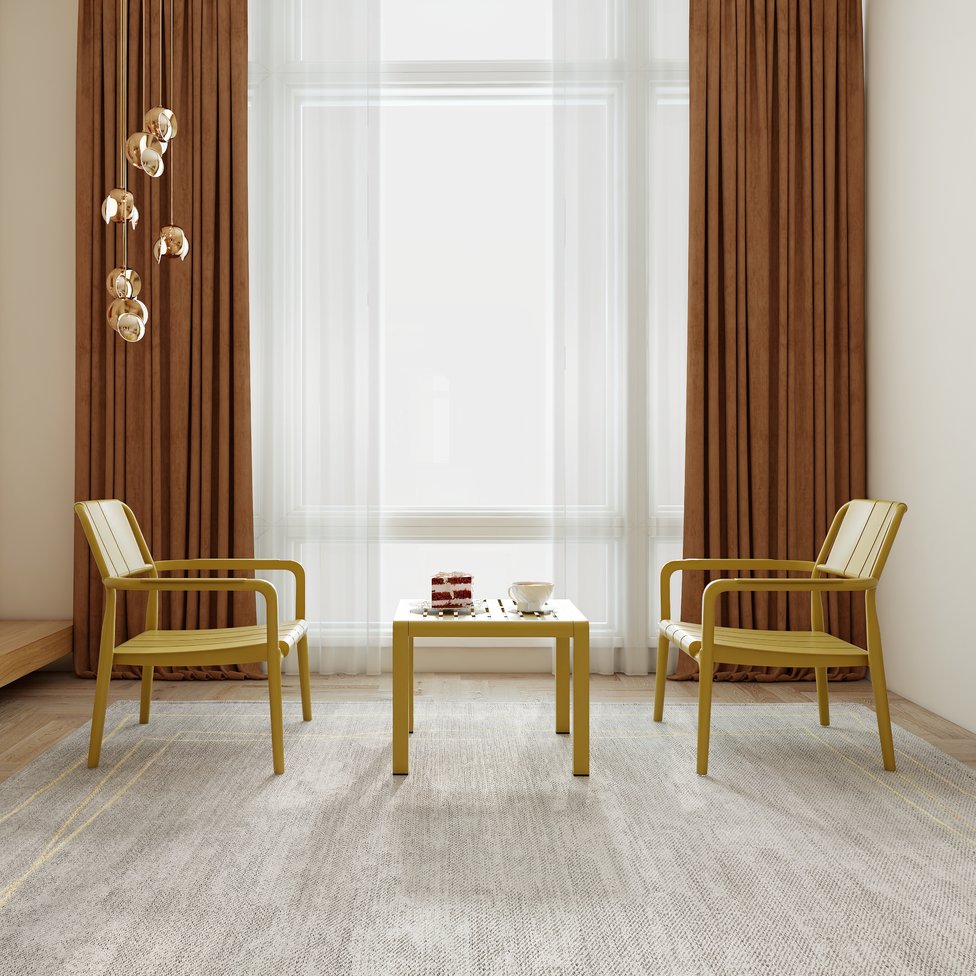 Brighten up small spaces with this cheerful 2-piece polypropylene seating set designed for both indoor and outdoor living. Lightweight yet sturdy, the set combines ergonomic comfort with weather-resistant durability so you can relax on the balcony, at the beach, beside the pool, or in a cozy corner of your living room. The compact footprint and stackable, slatted design make it easy to store and move, while vibrant yellow adds a contemporary pop of color.