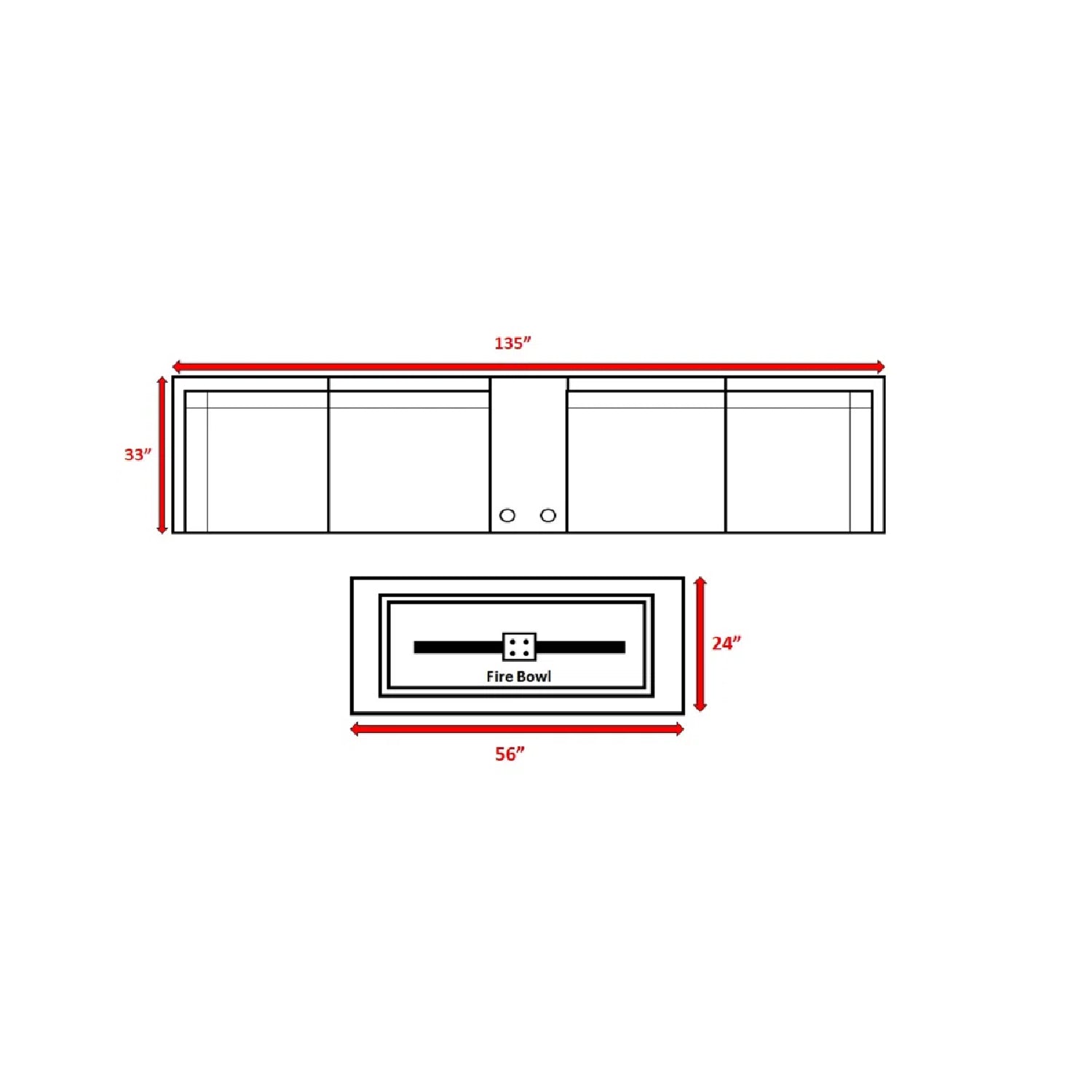 - Concrete Fire Pit: 56" W x 24" D x 15" H