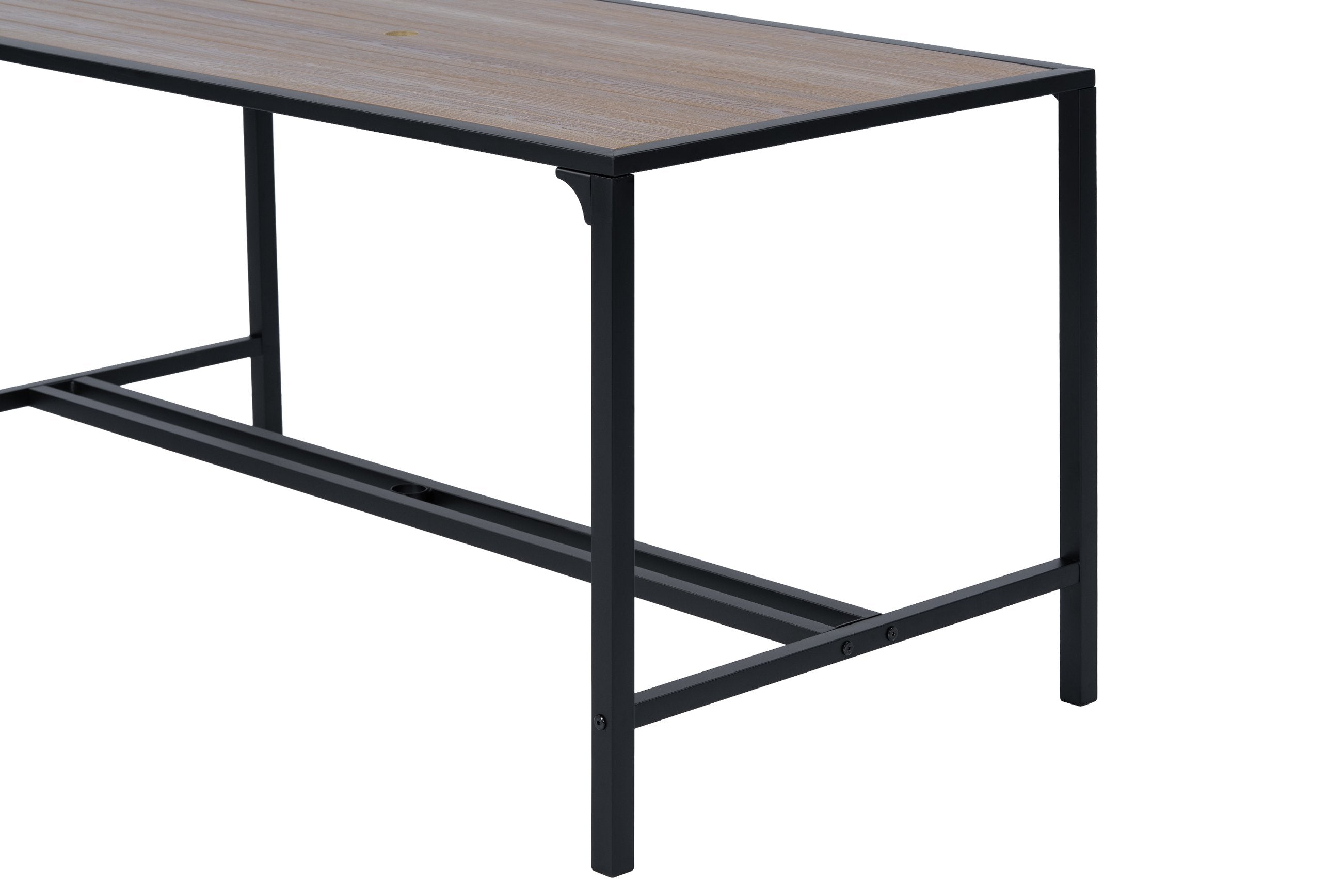 - High-quality Bistro Table:The table features a weather-resistant wood-plastic surface for easy cleaning and a delightful aesthetic. The strategically placed umbrella hole (umbrella not included) allows for shade on sunny days.