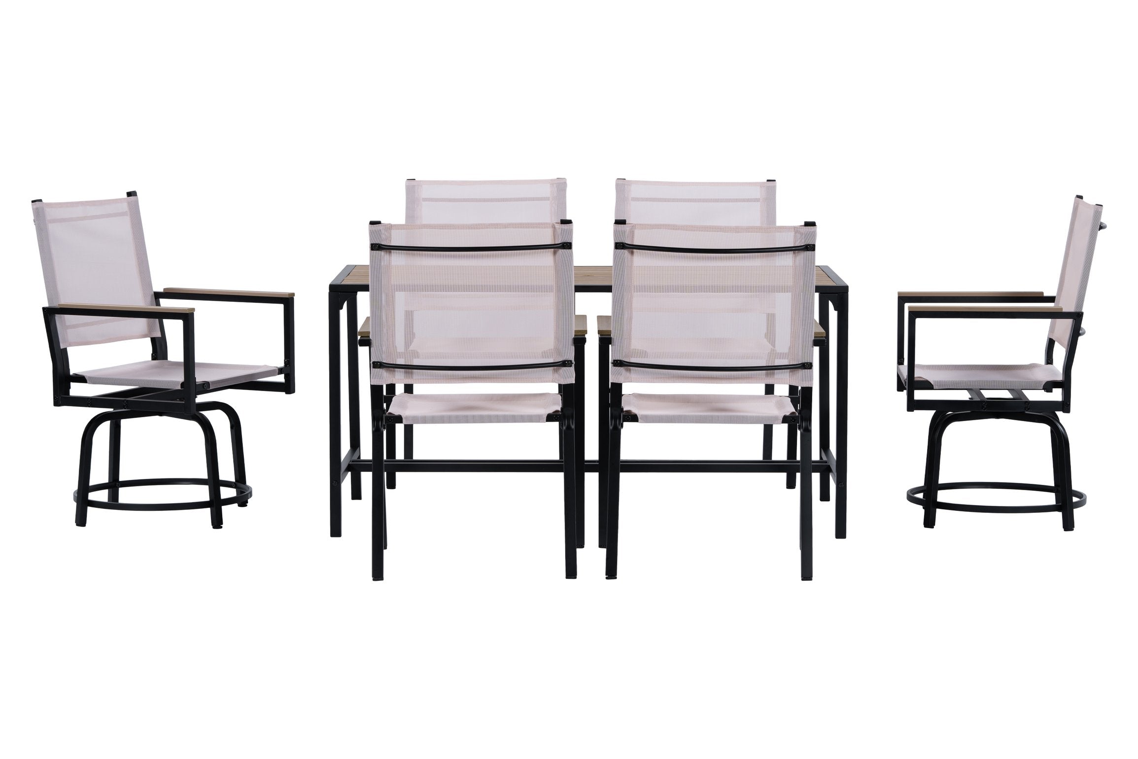 - Set Components: 1 dining table and 6 swivel dining chairs (7 pieces total).