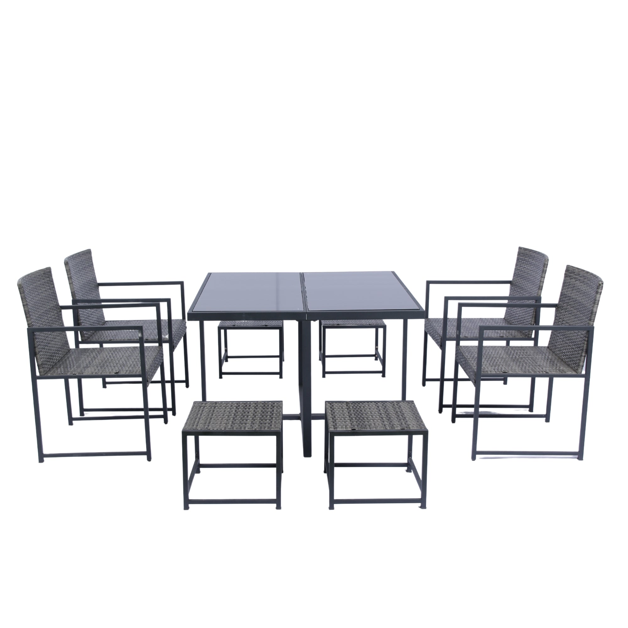 Create a comfortable, stylish outdoor dining spot that fits even the coziest patio or balcony. This 9-piece rattan dining set combines space-saving design with durable materials and contemporary styling—perfect for small outdoor spaces, terraces, or sunrooms where you want a complete dining solution without crowding the area.