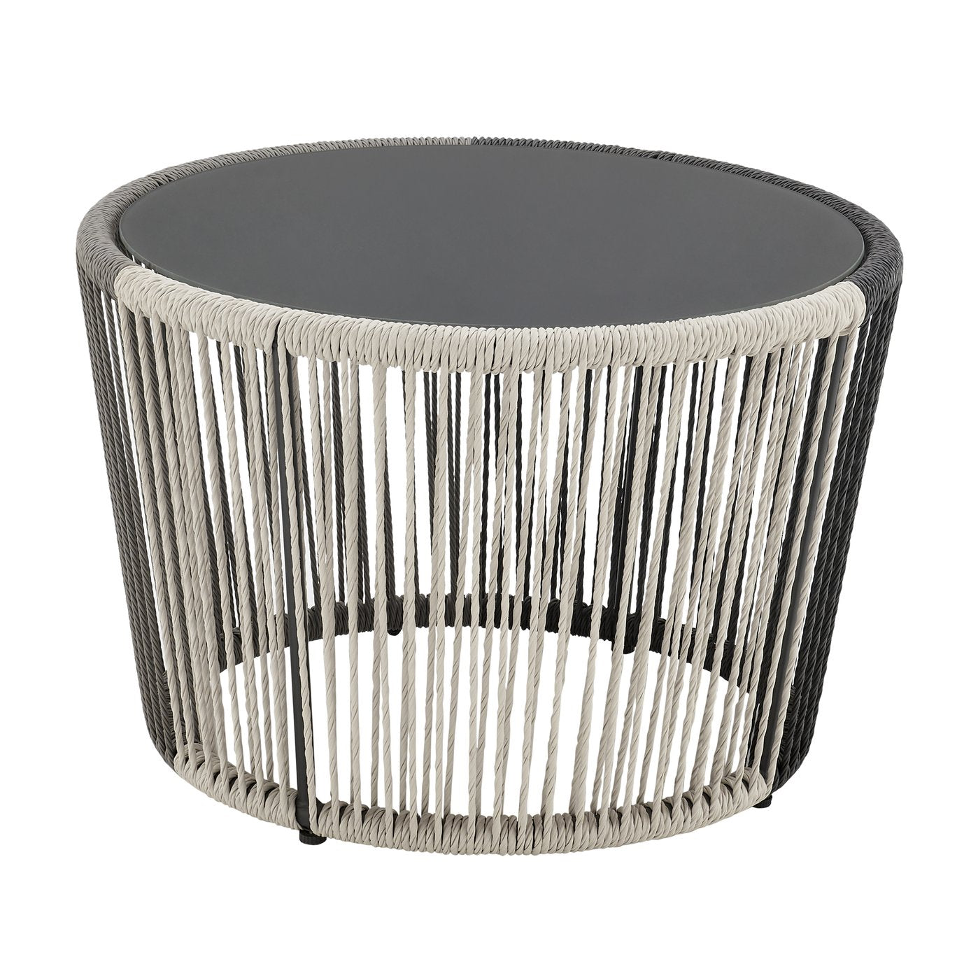- Materials & Construction: Rust-resistant steel frame wrapped in PE rope for outdoor durability; table top is high-quality weather-resistant steel.