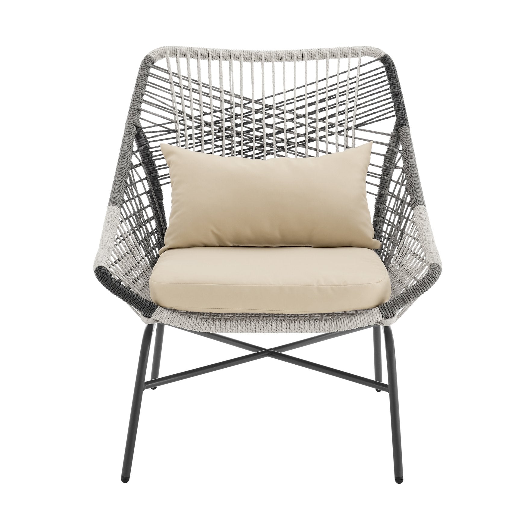 - Frame Made of Rust Resistant Steel Wrapped in PE Rope Perfect for Outdoor Weather.