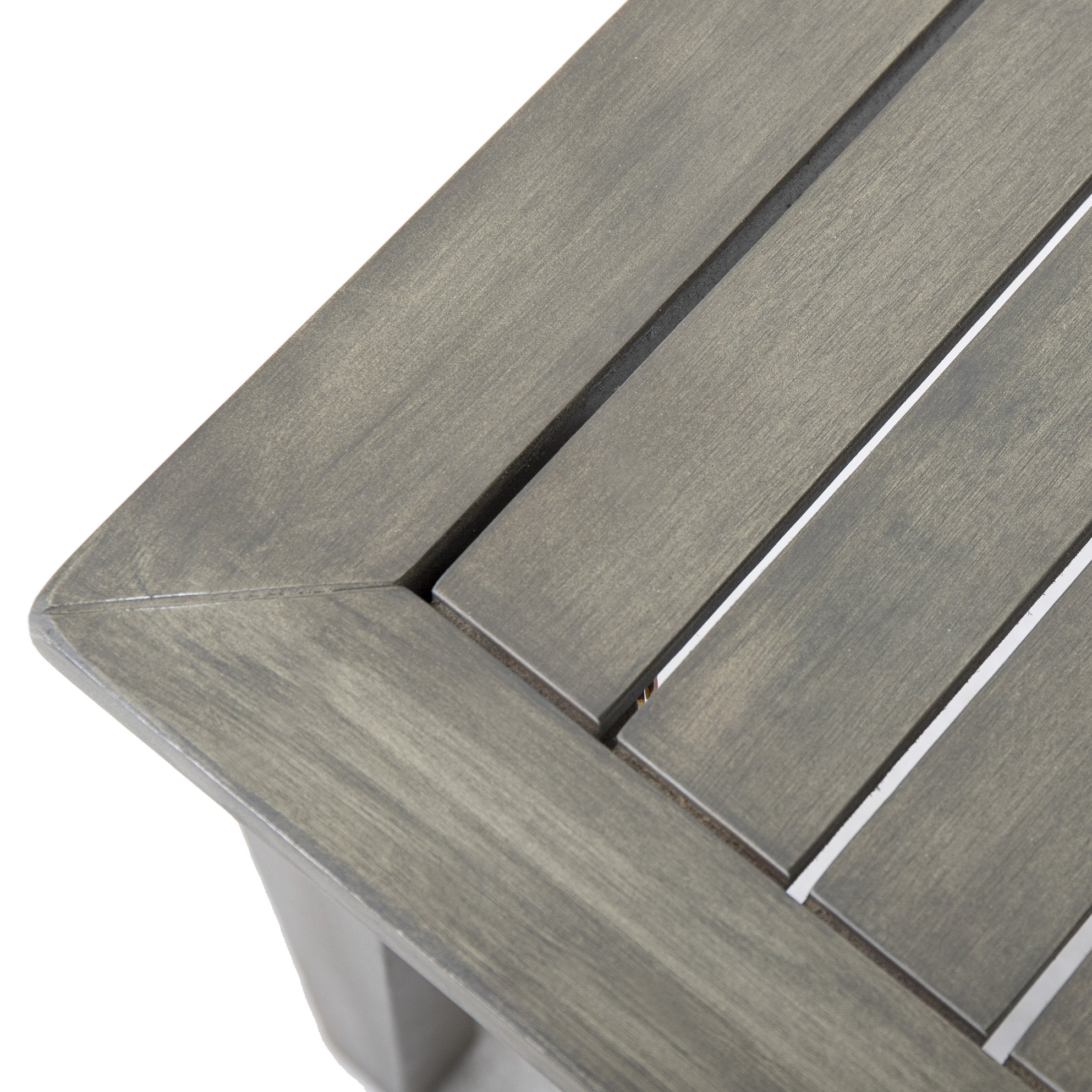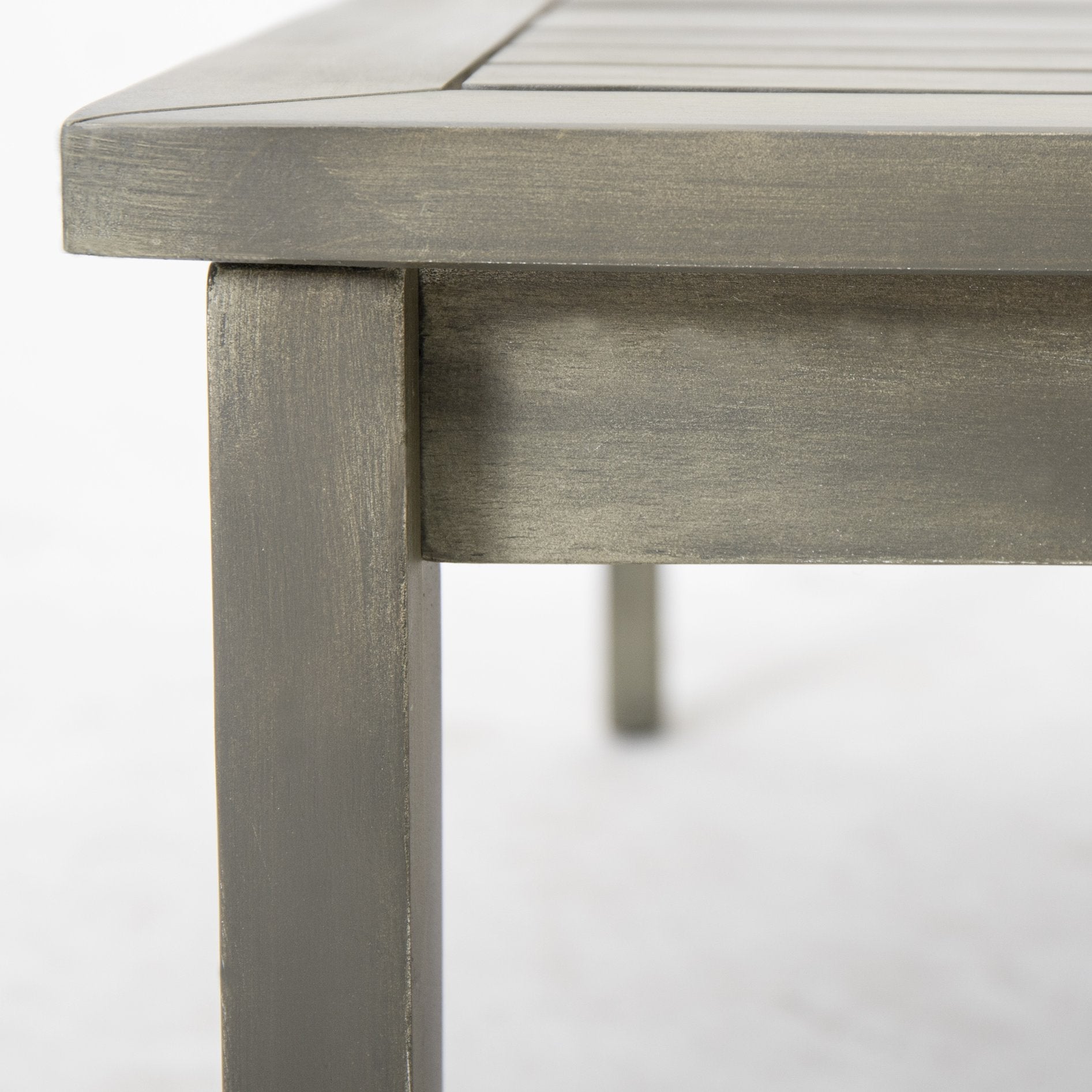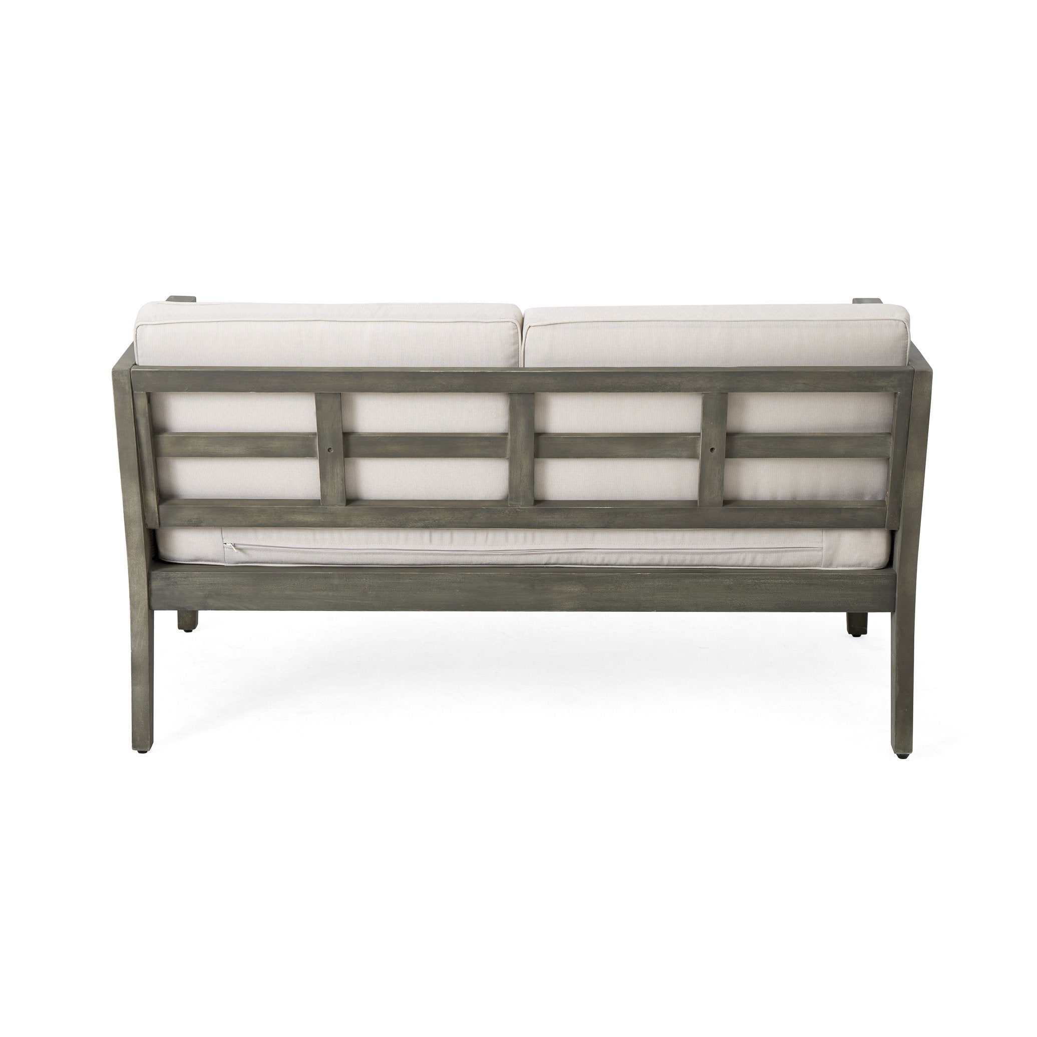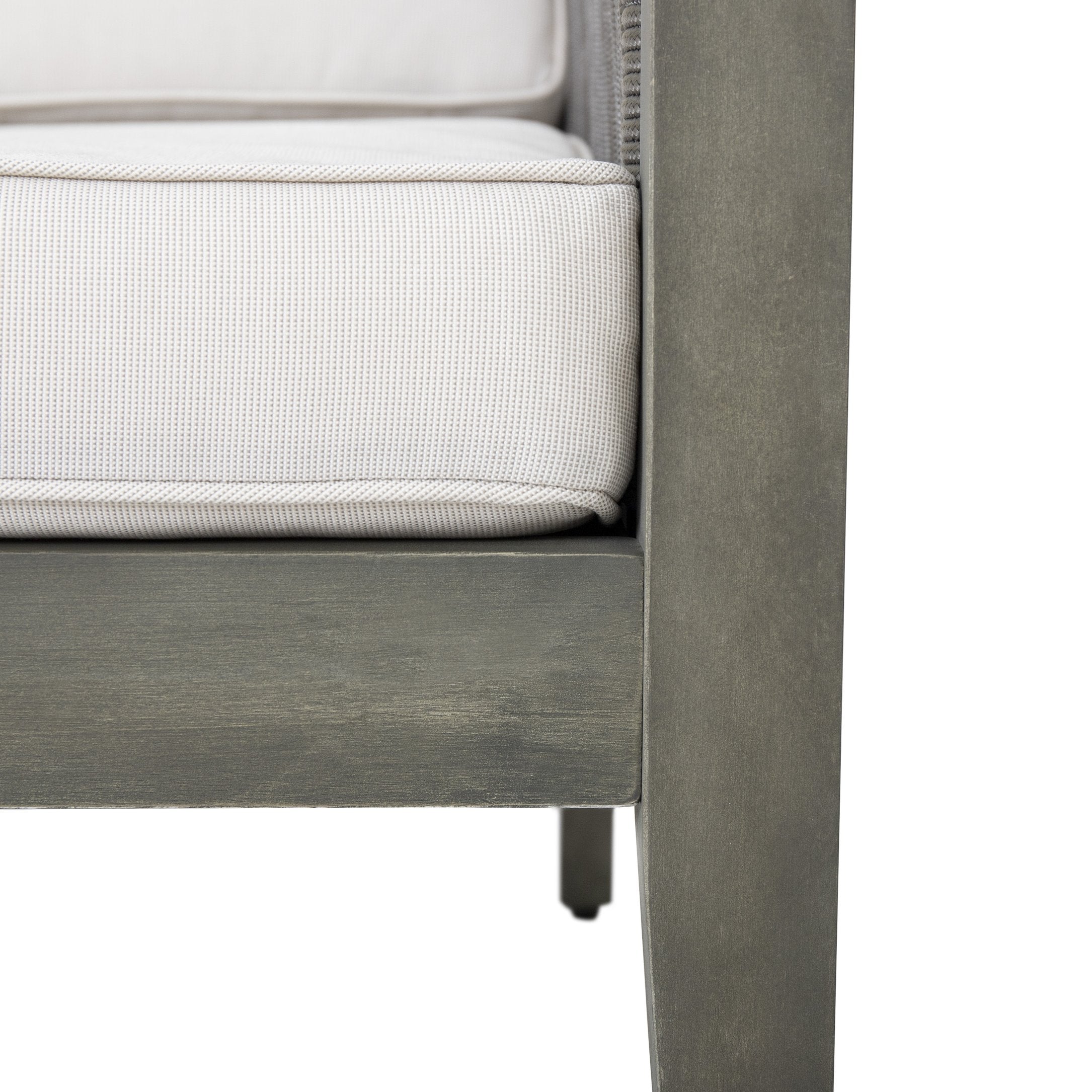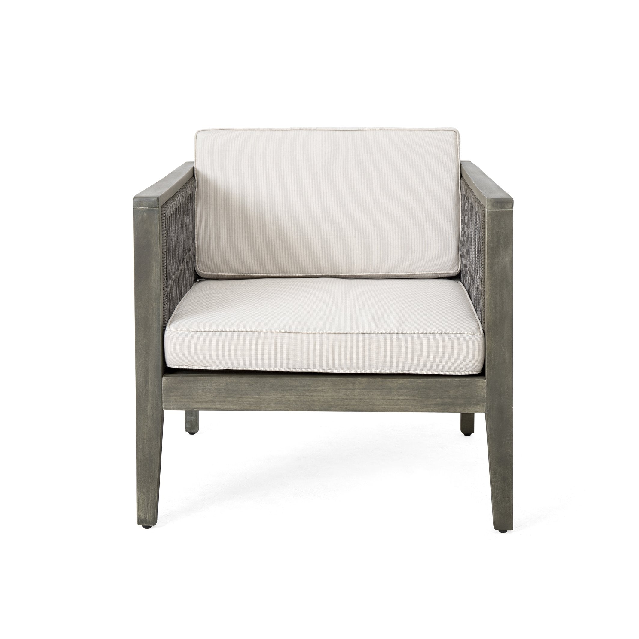 - Materials & Finish: Solid acacia wood frame and slatted tabletop, durable grey braided rope accents, olefin fabric removable cushion covers, and high-density sponge cushions in beige.