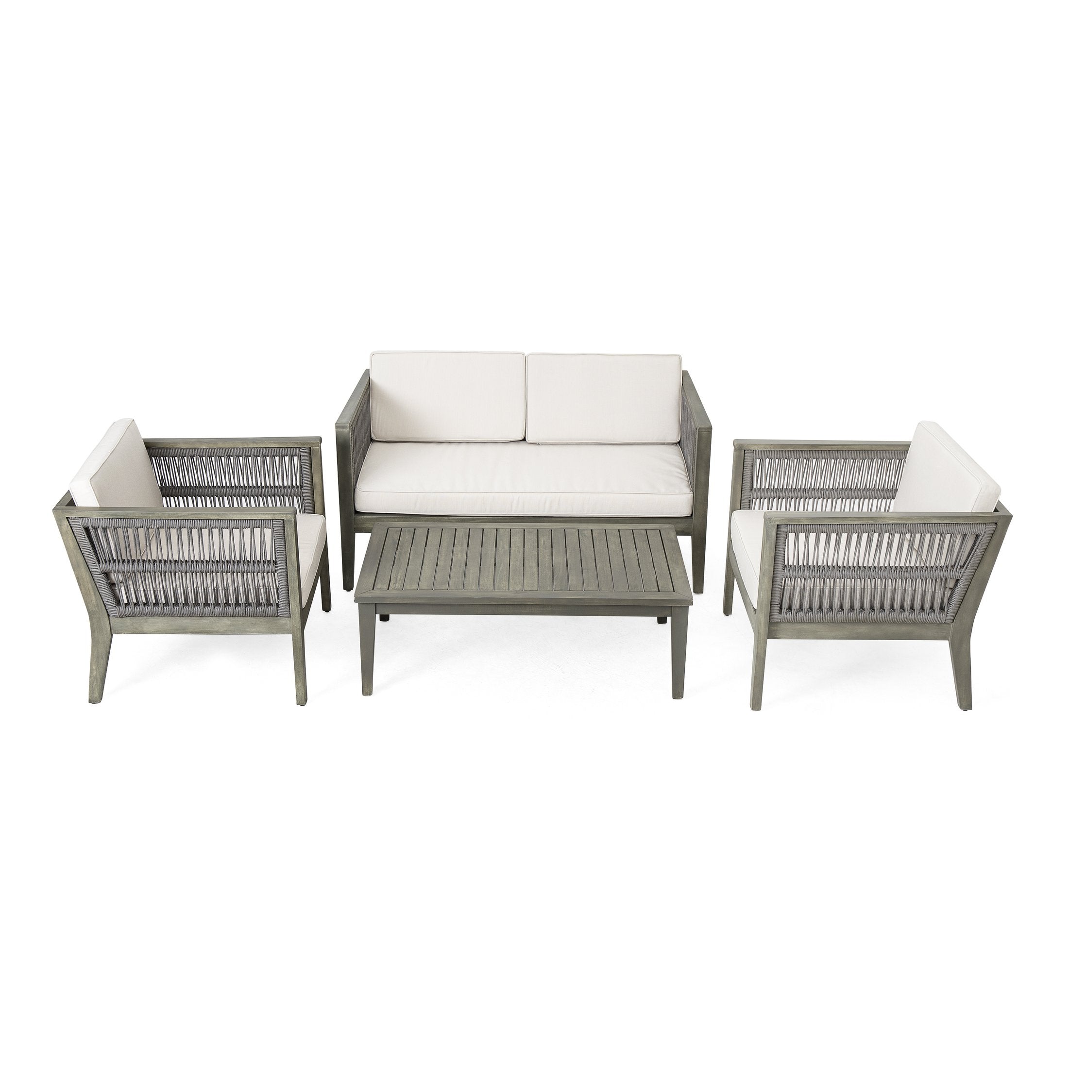 Enjoy relaxed outdoor living with this stylish 4-piece acacia wood patio set — thoughtfully designed for comfort, durability, and easy maintenance. Ideal for patios, porches, balconies, poolside areas, or gardens, the set combines natural acacia wood, all-weather rope, and soft olefin cushions to create a modern conversation area that’s both inviting and practical.