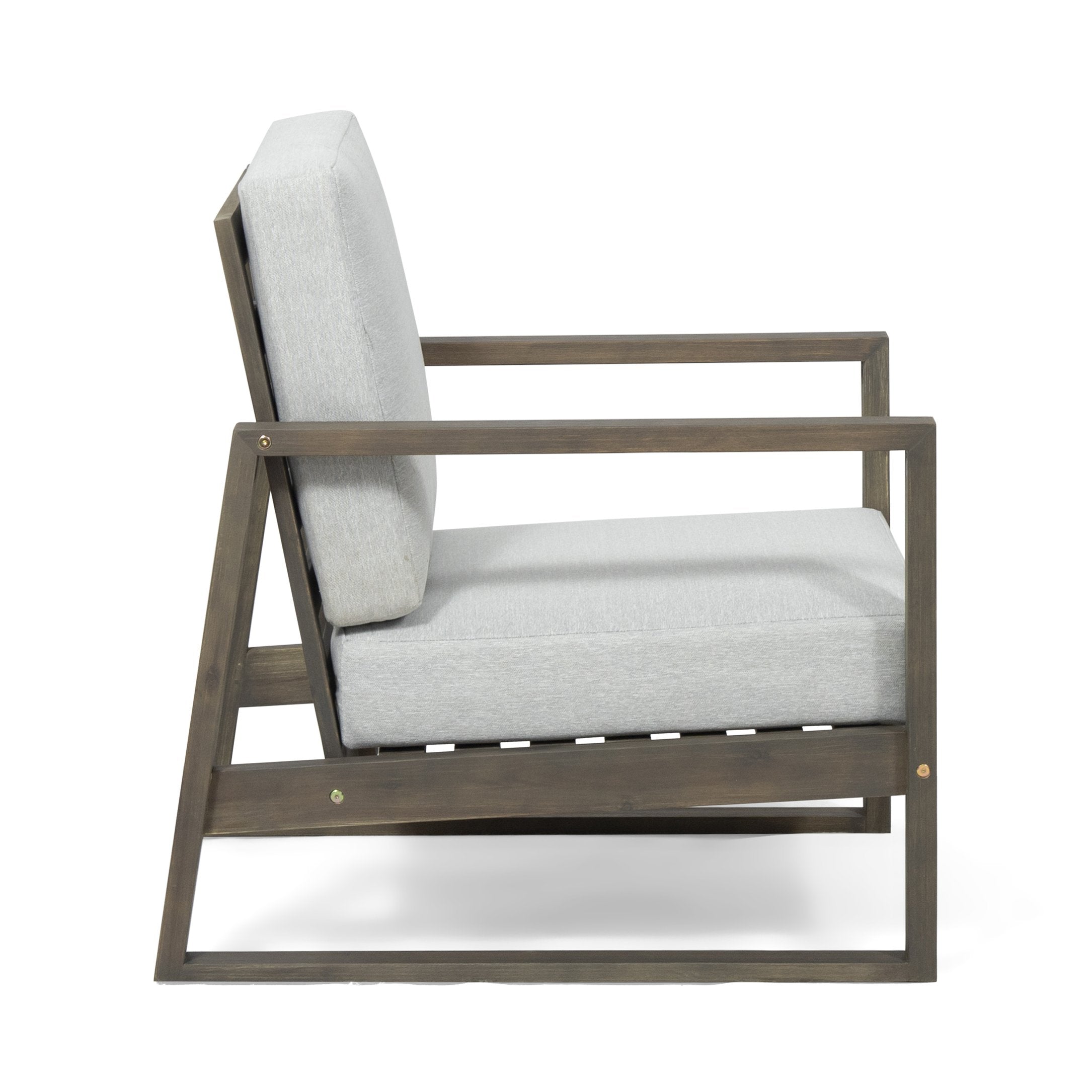 Create a relaxed, cohesive outdoor conversation area with this 4-person seating group. Crafted from durable acacia wood in a warm teak finish, the set pairs solid construction and classic slat detailing with comfortable cushions to deliver a stylish, long-lasting focal point for patios, decks, or backyard lounges.