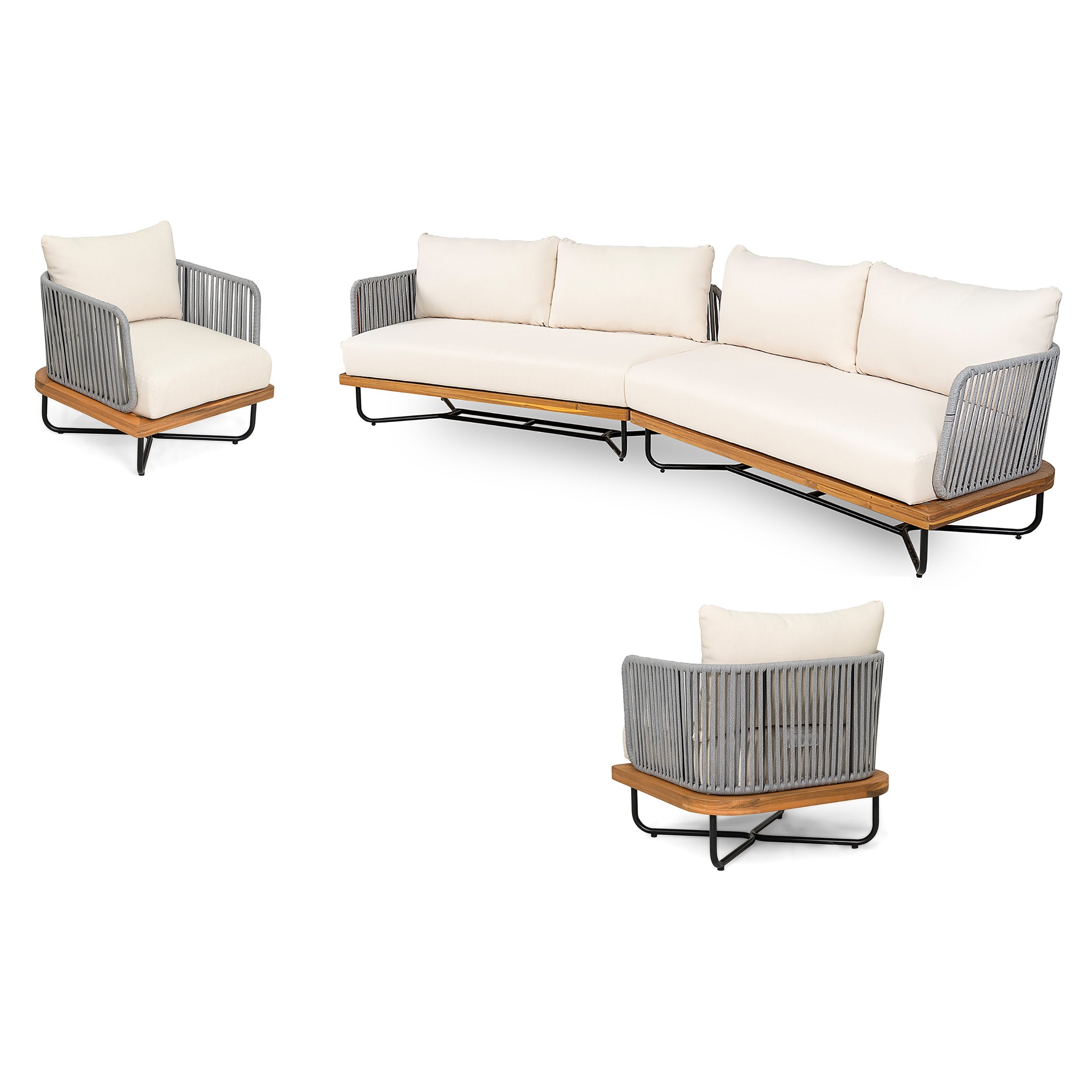 Transform your outdoor living area with this stylish and comfortable 6-person conversation set, crafted for durability and relaxed entertaining. Combining warm acacia wood framing, hand-woven rope detailing, and water-repellent cushions, this ensemble balances weather-ready performance with refined patio style—ideal for lounging, socializing, or casual dining outdoors.