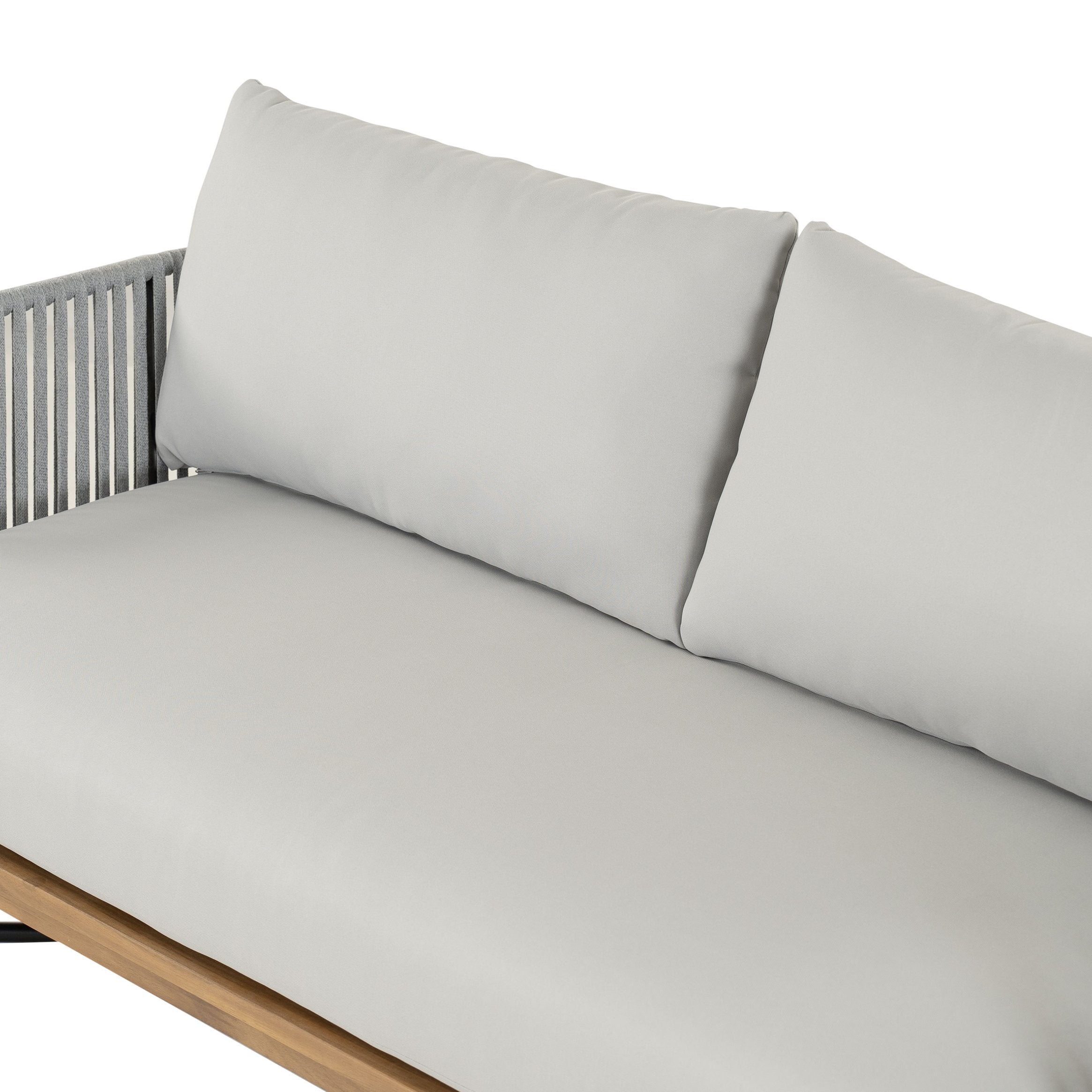 Elevate your outdoor living area with this stylish and durable 4-piece conversation set, designed to blend modern coastal charm with practical performance. Crafted from solid acacia wood and hand-woven PE rope, the set delivers comfortable seating and a refined aesthetic that works equally well on patios, decks, or garden terraces. Water-repellent cushions and a slatted coffee table make this ensemble both attractive and functional for everyday outdoor use.