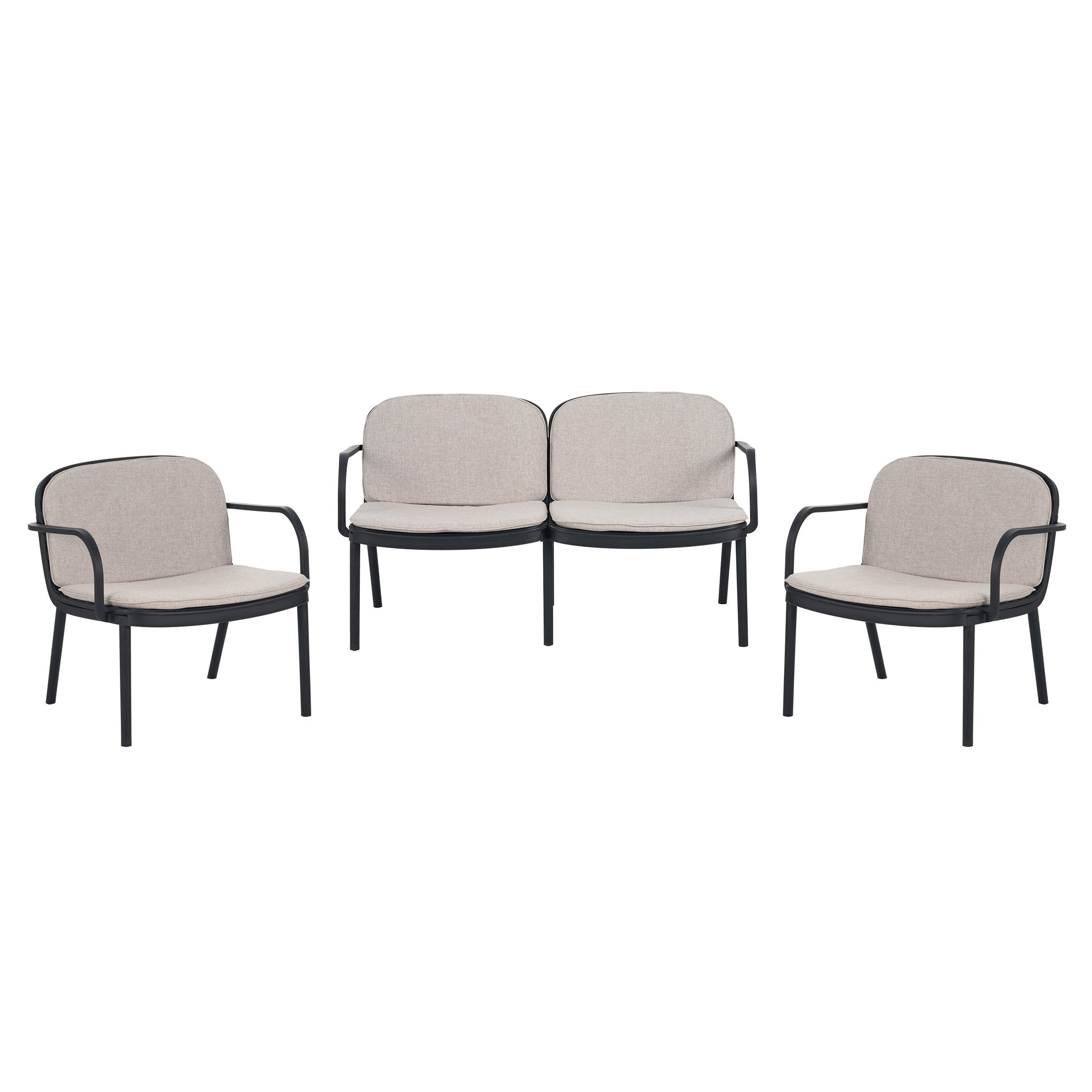 Bring modern comfort to your outdoor living space with this expertly crafted 3-piece chat set. Thoughtfully designed for patios, balconies, and poolside lounges, the Luna set pairs a durable matte-black polypropylene frame with breathable beige cushions to create a stylish, low-maintenance seating group that’s easy to rearrange for intimate conversations or casual entertaining.