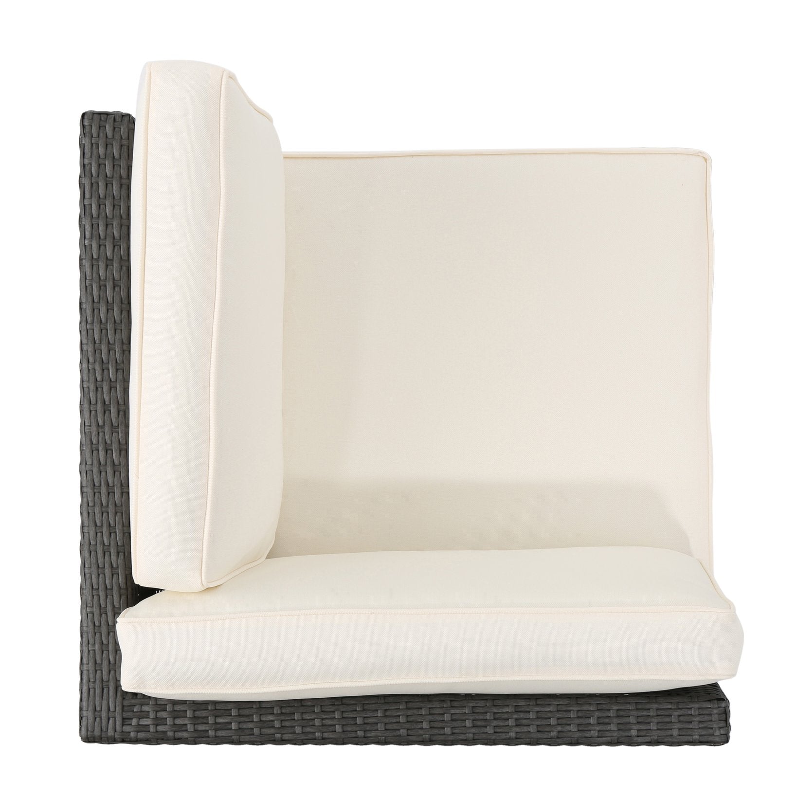 Elevate your outdoor living space with this stylish and durable corner seating set. Designed for comfort and low maintenance, the grey and white PE rattan finish complements modern patios while the sturdy iron frame ensures long-lasting stability. Weather-resistant cushions provide cozy seating for relaxing or entertaining, and the compact coffee table offers a convenient surface without taking up valuable space.