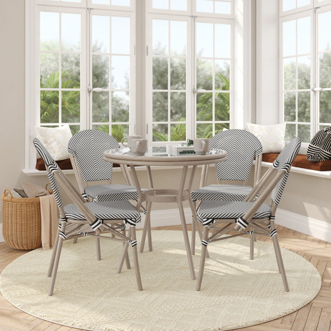 - Classic Commercial Grade Indoor/Outdoor French Bistro Set with Table and Four Chairs