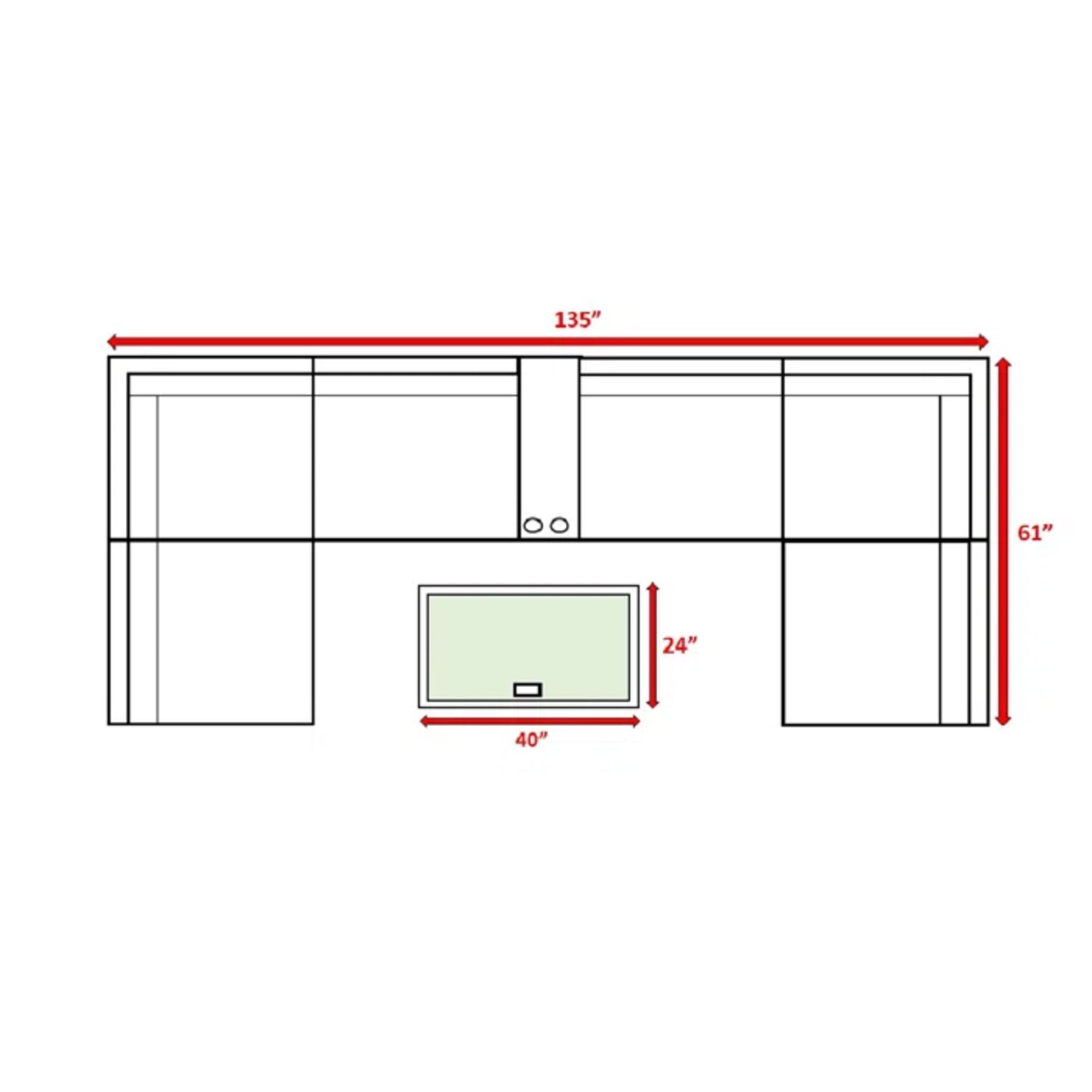 - Sofa: 26" H x 135" W x 61" D
