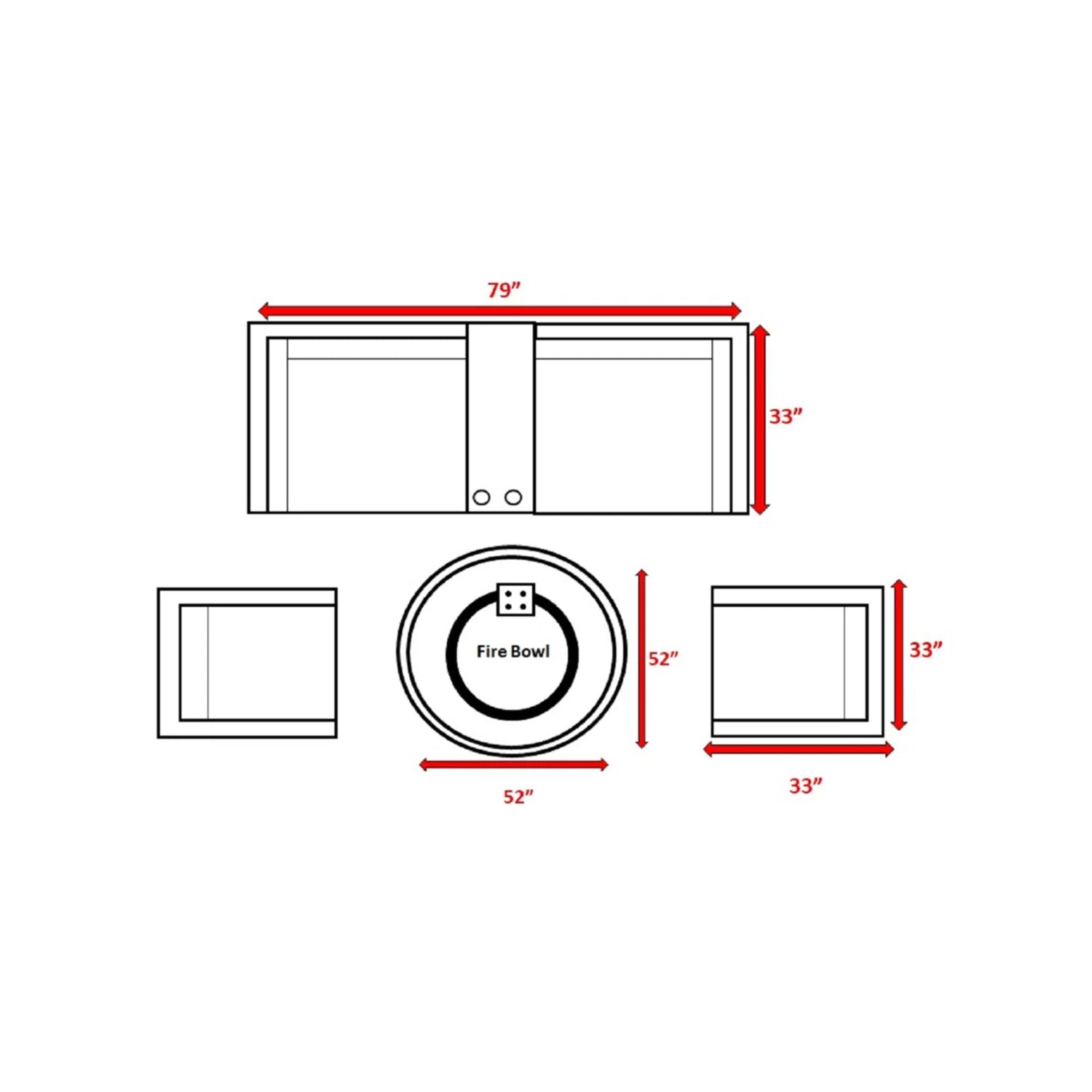 - Included pieces: Loveseat, 2 lounge chairs, fire pit table, 10 cushions (seat and back), and a fire pit cover.