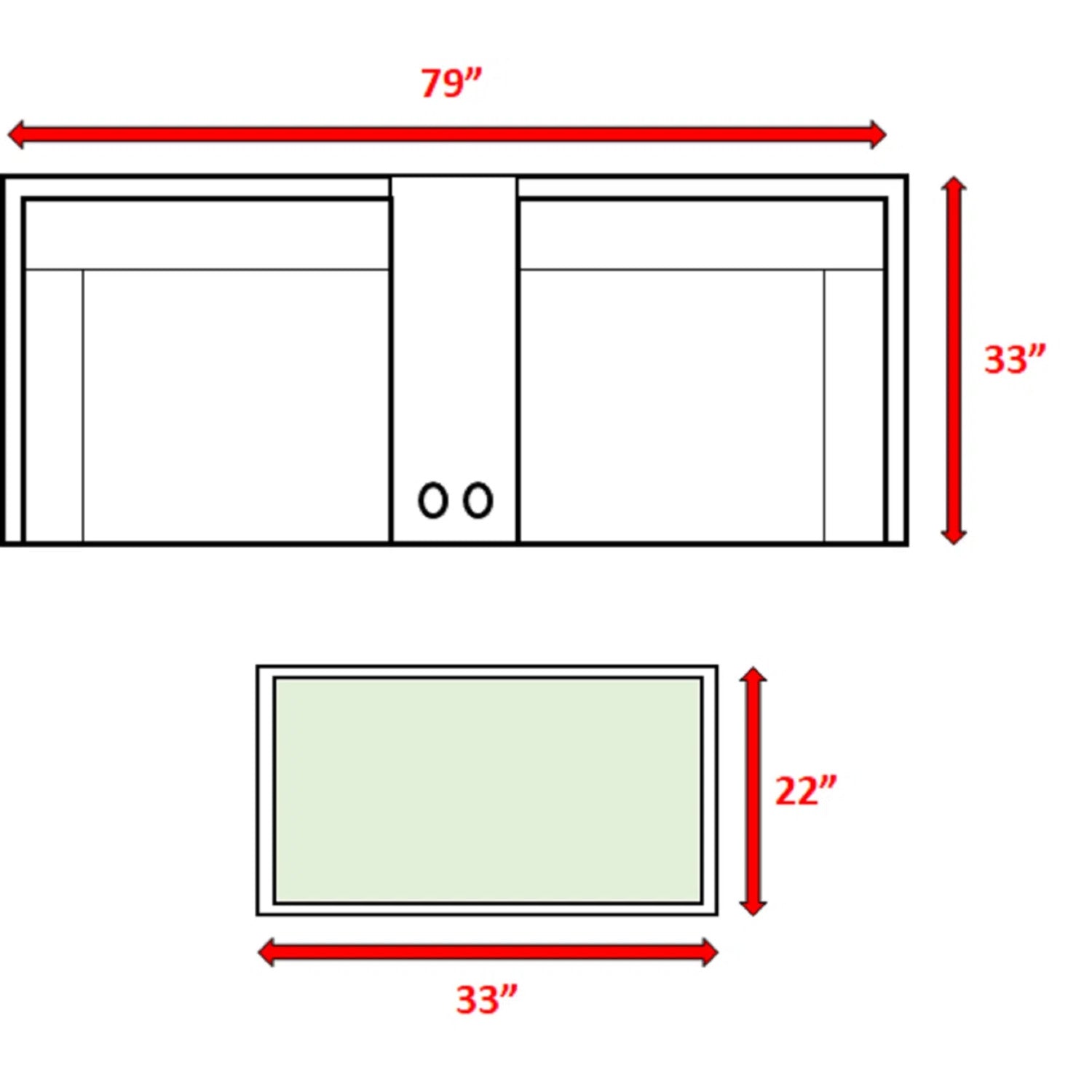 - Prominent product dimensions: Loveseat (when combined): 26" H x 79" W; Table: 18" H x 33" W x 22" L; Seat Cushions: 27" W x 27" D x 5" H; Back Cushions: 28" W x 14" H; Overall product dimensions listed: 31.5 L x 13.78 W x 24.02 H.