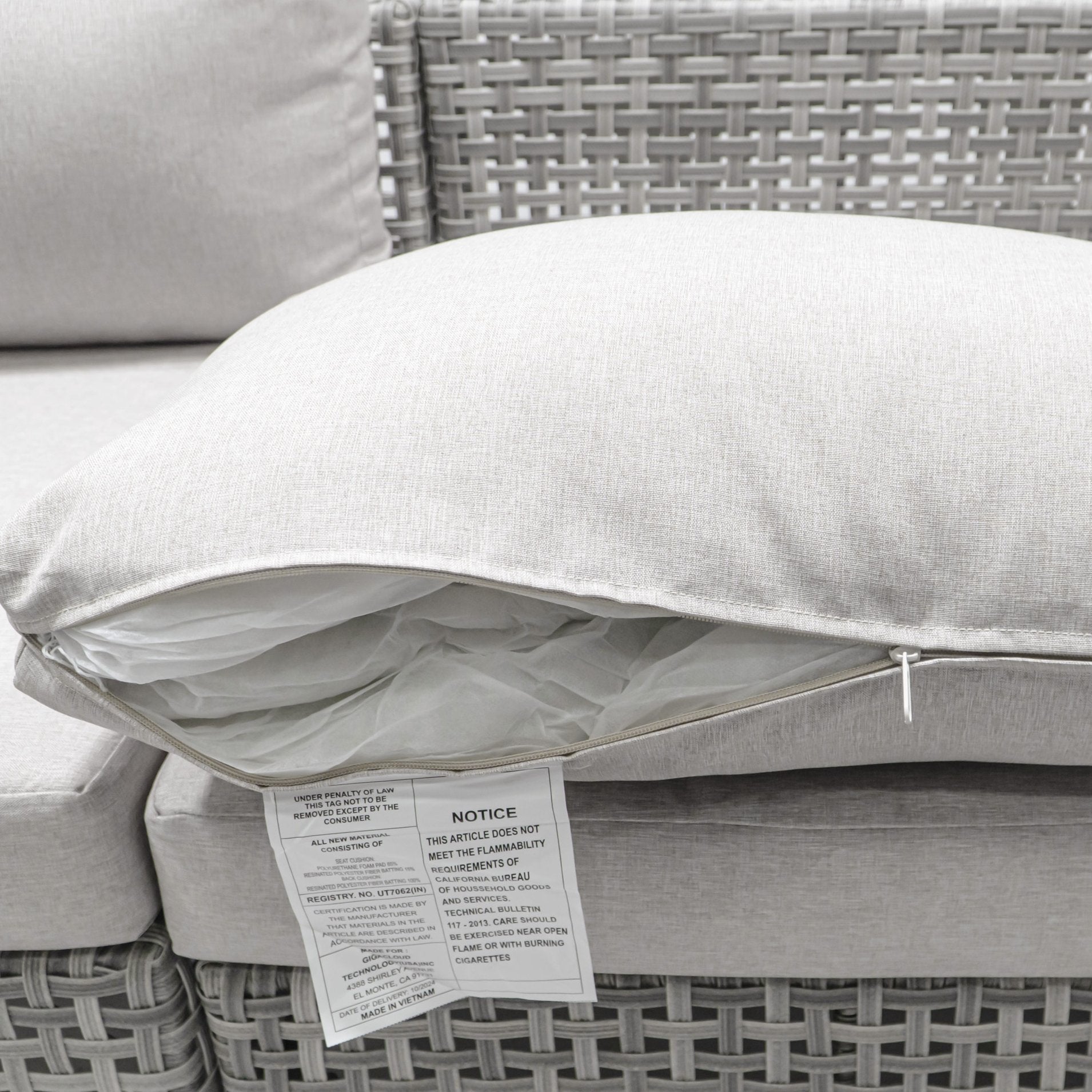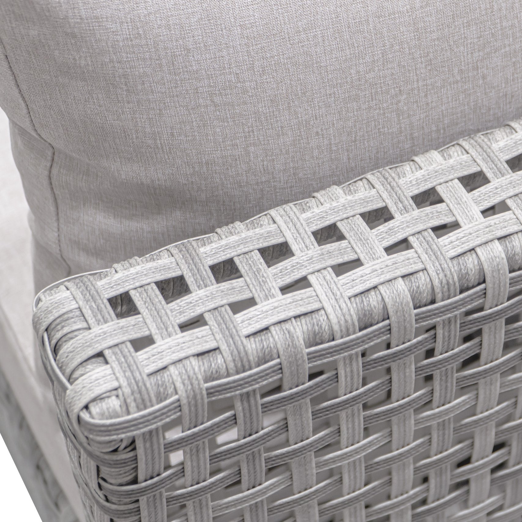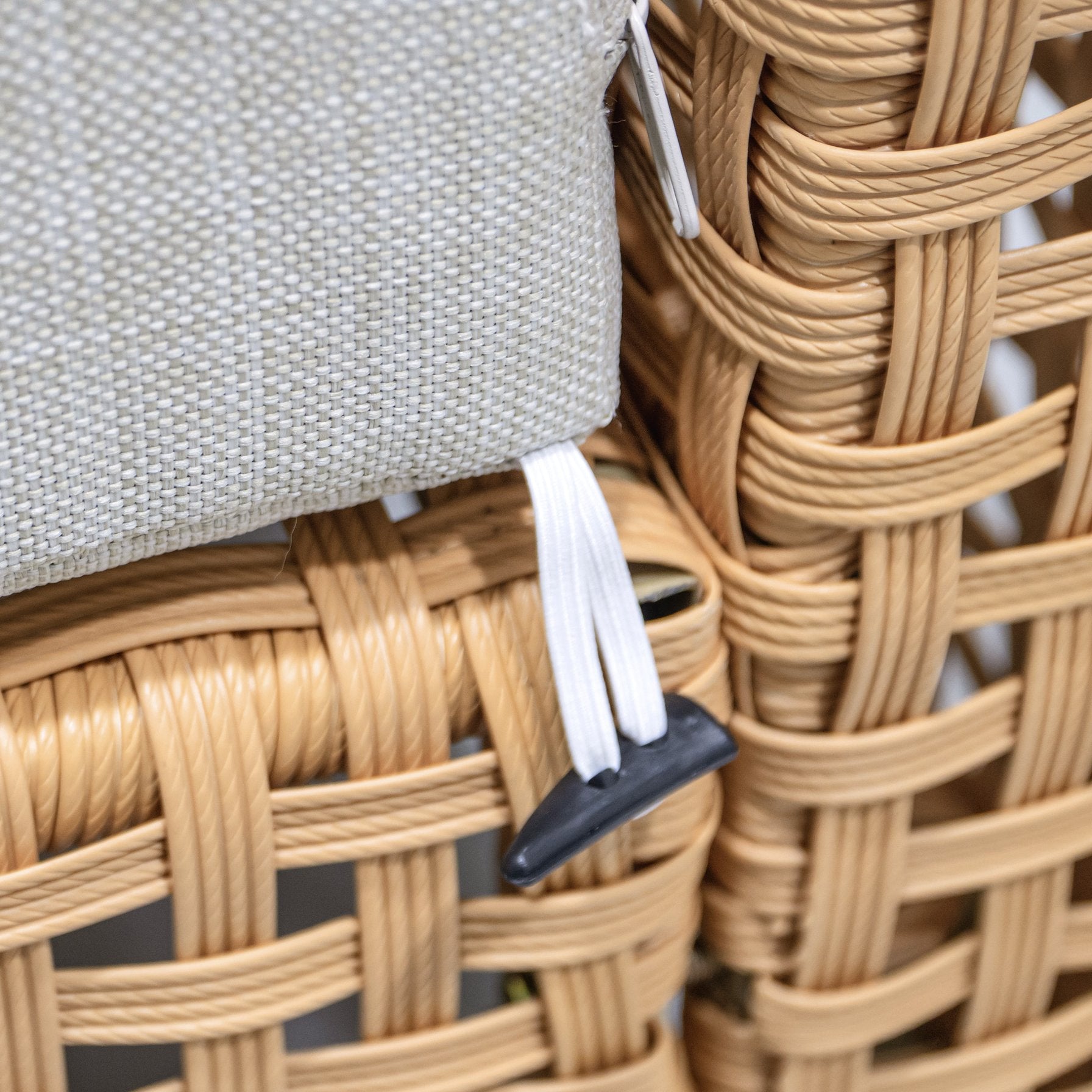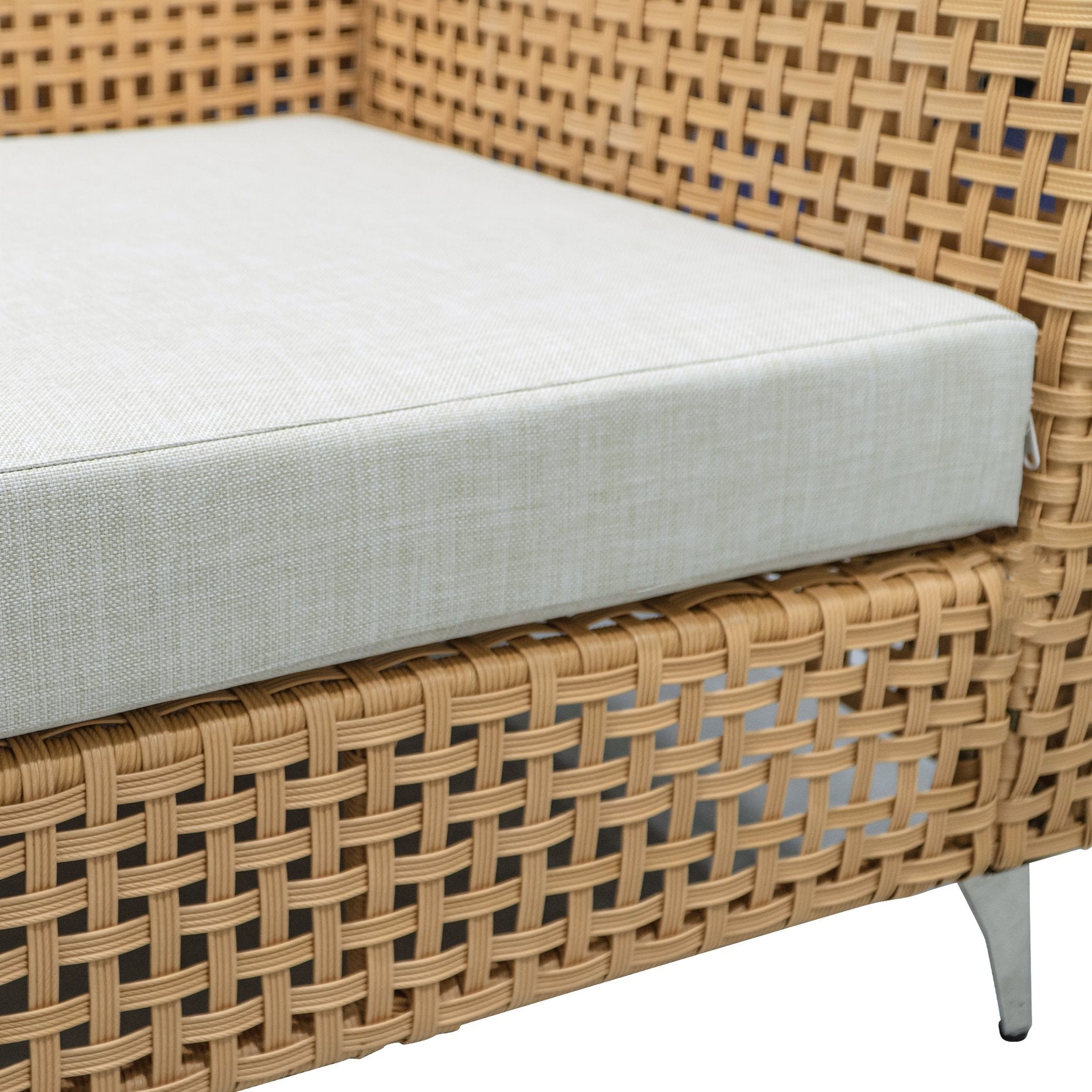 - Comfortable, weather-resistant cushions: 4" thick seat cushions and 7.1" thick back cushions with water-repellent, UV-protected Poly-CD fabric; zippered, removable covers for easy washing and anti-slip clasps to keep cushions in place.