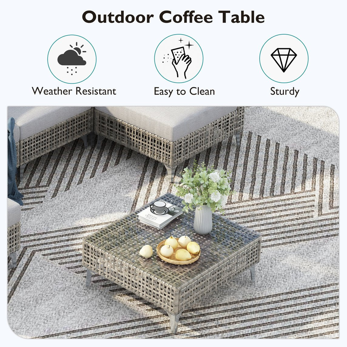 - [All-Weather Durability] The patio fire table features a 100% steel frame design, with powder coating for stability and long-lasting resistance against outdoor elements. The sofa has a capacity of 400 lbs. (each), and the table has a capacity of 220 lbs. (each). Paired with hand-woven resin wicker rated at 1000 UV hours, the outdoor sectional sofa set is not only effortless to clean but also highly resistant to sun, rain, heat, and cold, preventing cracking, sagging, or fading over time.