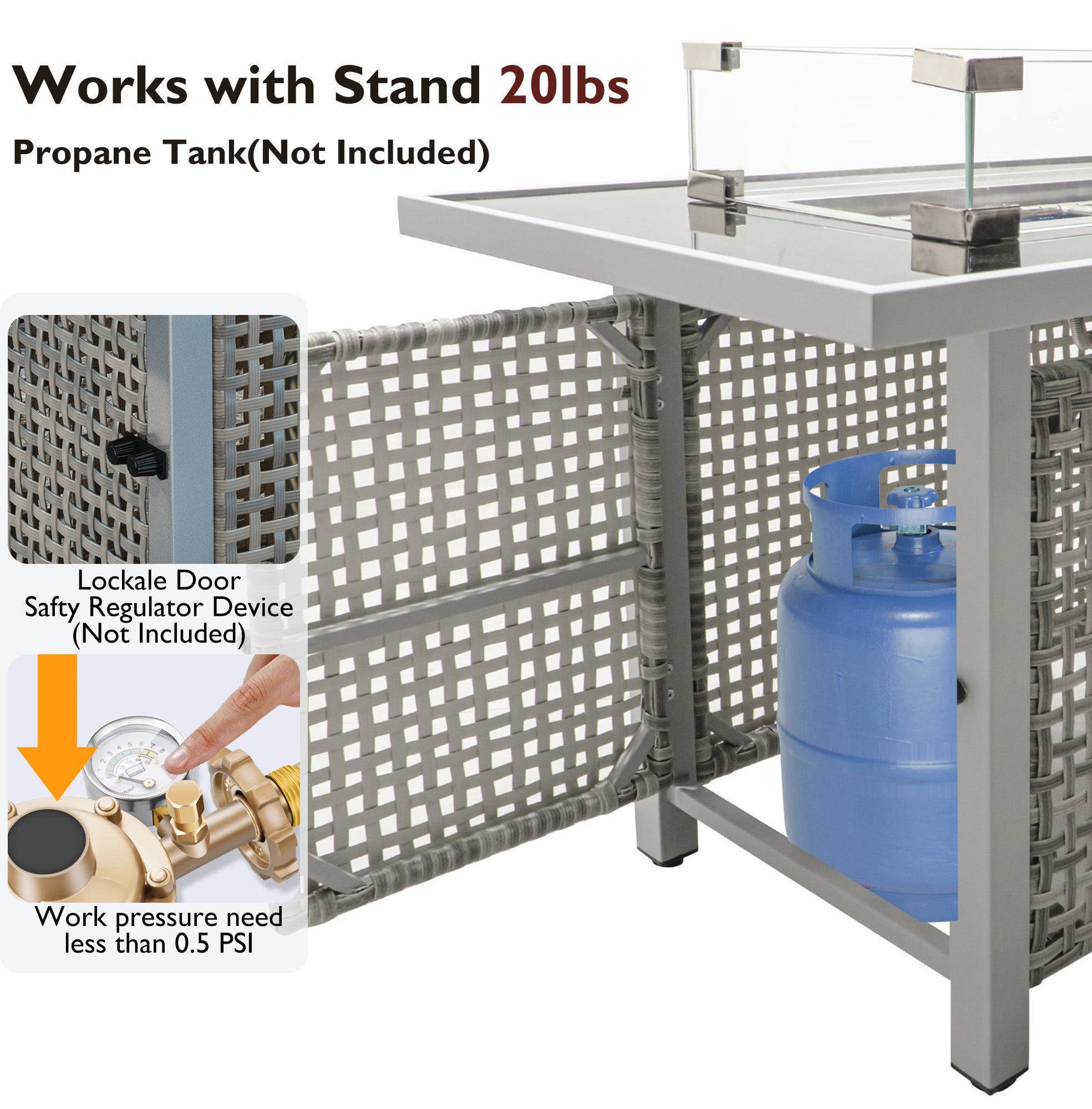 - [2 in 1 43'' Fire Pit Table] This rectangular fire table can not only offer heat to keep you warm during cold weather, but when the lid is covered, it can also serve as a dining table or coffee table. Around the edge of each fire pit, there is ample space to place food and drinks. You can obtain a wind guard, lava glass, lid, and assembled connected hoses. A standard propane tank (not included) can be placed within the fire pit base, saving space and ensuring greater safety.
