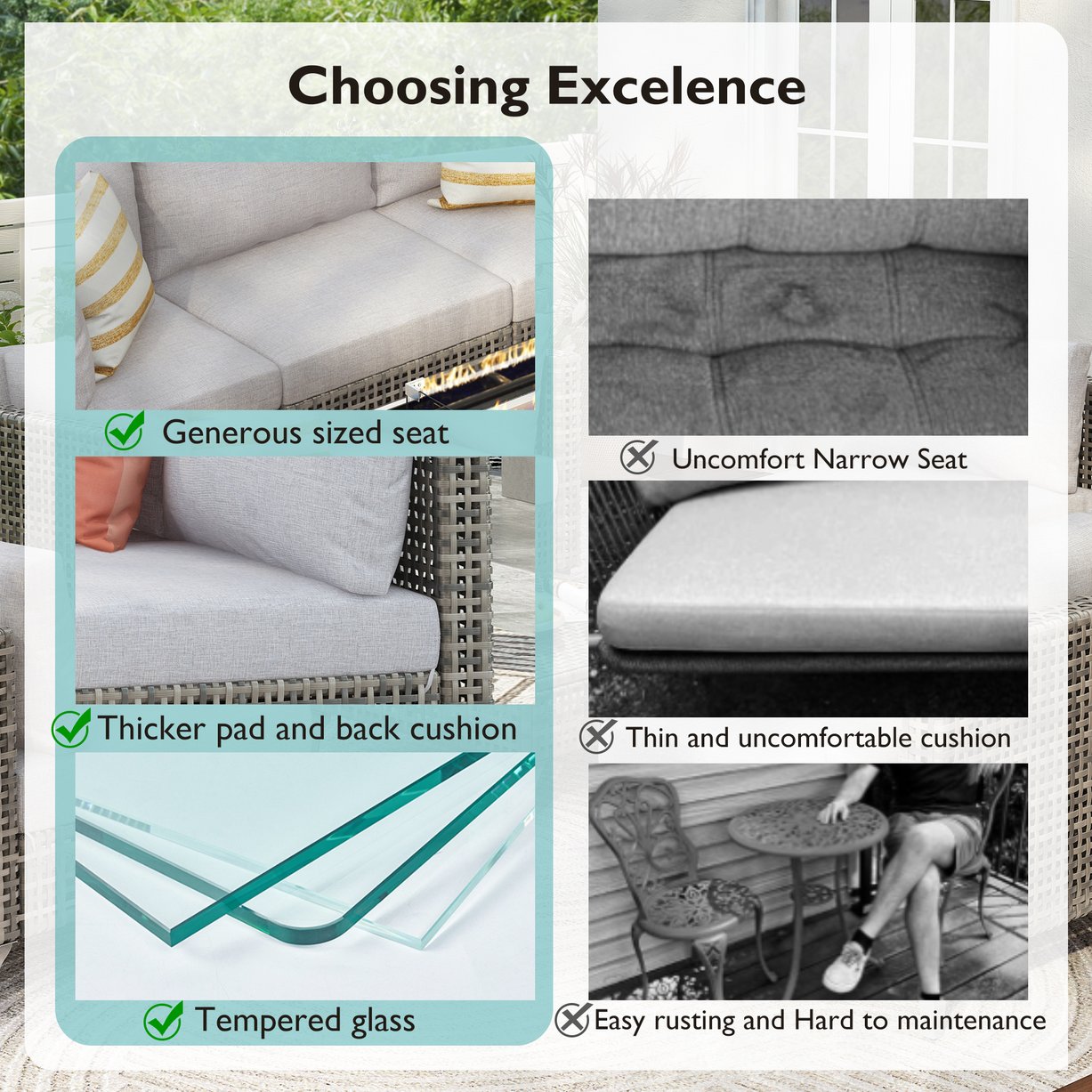 - [Easy to Assemble and Maintain] This 8-piece patio conversation set can be effortlessly assembled by following the provided clear instructions and using all the necessary accessories. Whether after rain or sun exposure, a simple wipe is all it takes to keep your patio sofa and outdoor couch looking fresh and new, always in prime condition. If any issues arise during assembly or use, please do not hesitate to contact us, and we will offer you the most positive and effective assistance.