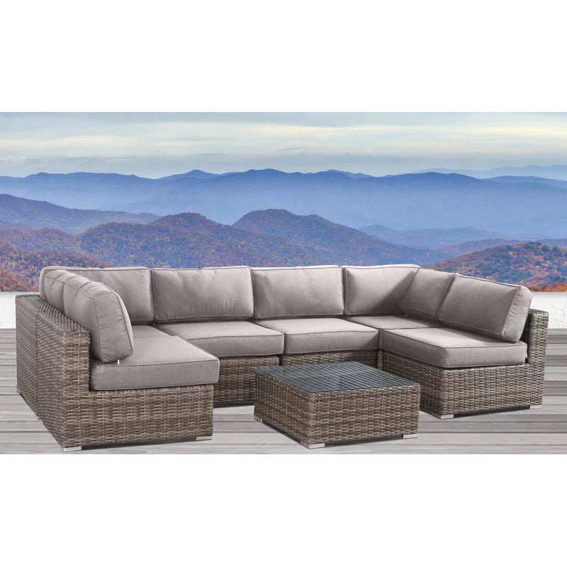 Transform your outdoor space into a stylish and comfortable retreat with this fully assembled 7-piece rattan wicker seating group. Thoughtfully designed for socializing and relaxation, the set combines weather-resistant woven HDPE, a lightweight aluminum frame, plush premium cushions, and a tempered glass-topped coffee table to deliver lasting durability and contemporary curb appeal—no assembly required.