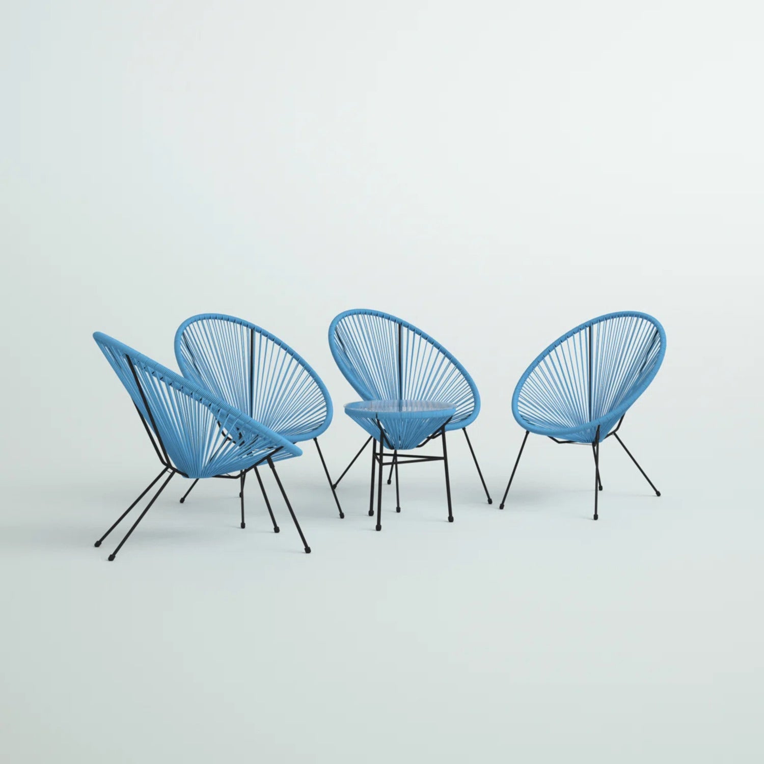 - Includes 4 ergonomically designed lounge chairs and 1 matching table