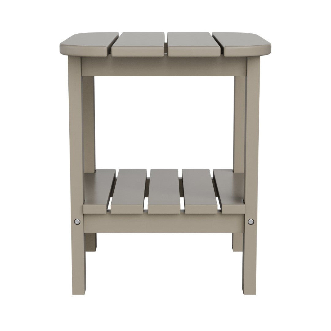 - Set components: 2 adjustable HDPE Adirondack loungers + 1 two-tier side table