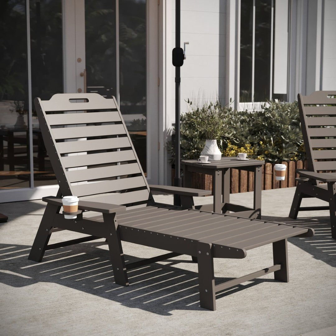 Enjoy premium comfort and timeless style with this commercial-grade three-piece Adirondack set—perfect for both residential and commercial outdoor spaces. Crafted from durable, wood-look HDPE, the set combines low maintenance with weather-resistant performance so you can relax poolside, on the patio, or offer guests a reliable seating solution at restaurants, hotels, or event venues. Two adjustable loungers and a two-tier side table deliver ergonomic support, practical storage, and convenient beverage placement for long-lasting enjoyment.