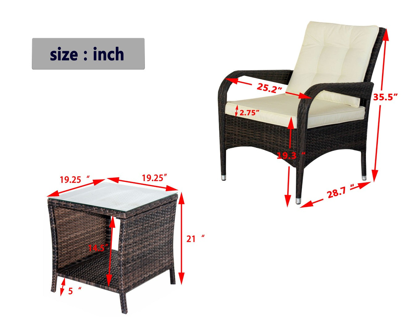 - Chair: 28.7x 25.2x 35.5 inch (L X W X H); Coffee Table:19.25x 19.25x 21inch (L X W X H)