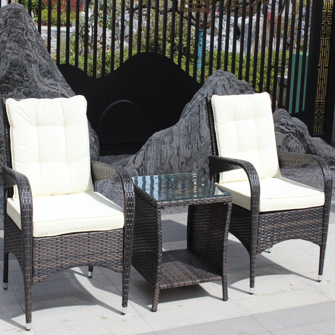 Create a cozy outdoor conversation area with this compact 3‑piece wicker patio set. Designed for small patios, balconies or sunrooms, the set combines durable PE rattan, powder‑coated steel framing and comfortable removable cushions for easy care. The included tempered glass coffee table and weather‑resistant finishes make this ensemble both stylish and practical for everyday outdoor use.