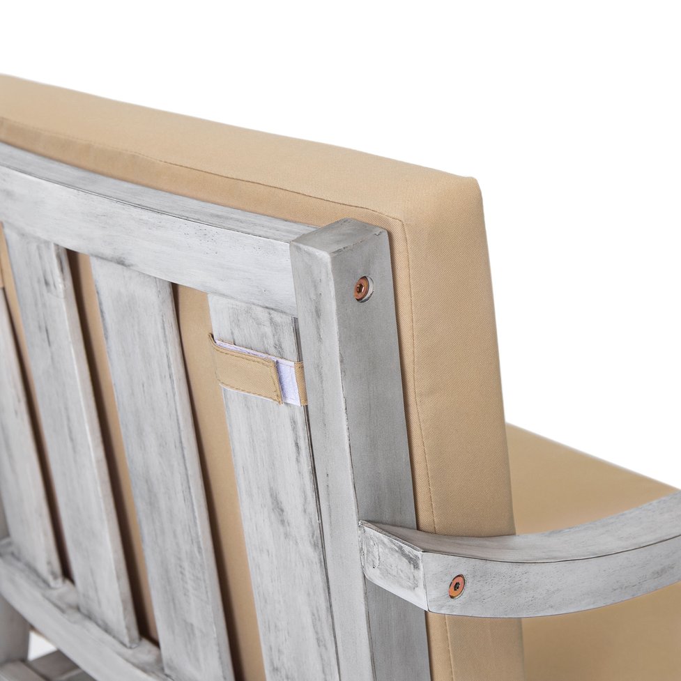 - Finish & color: Antique gray frame with light brown seat cushions for a classic, neutral palette.