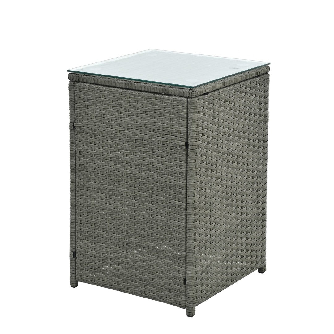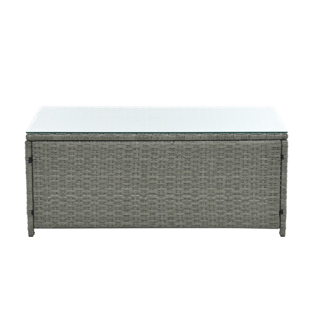 - Material & construction: Powder-coated square metal tube frames for stability, hand-woven PE wicker rattan for weather resistance, plastic end caps to protect surfaces, and 5mm tempered glass tabletop for added durability and easy cleaning.