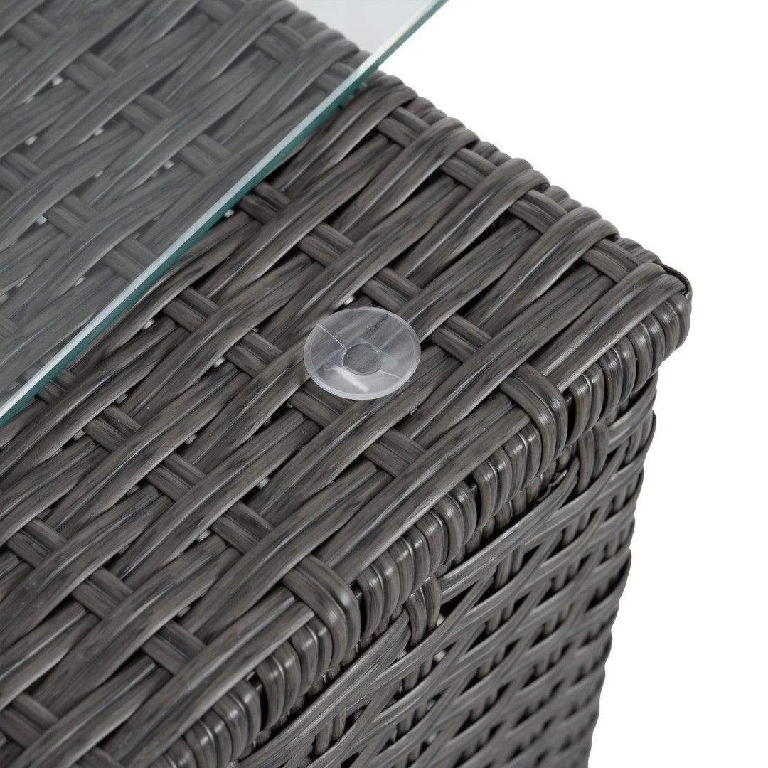 - Key Materials: Weather-resistant PE wicker (hand woven), powder-coated metal tube frame, 5mm tempered glass tabletop, plastic end caps for protection.