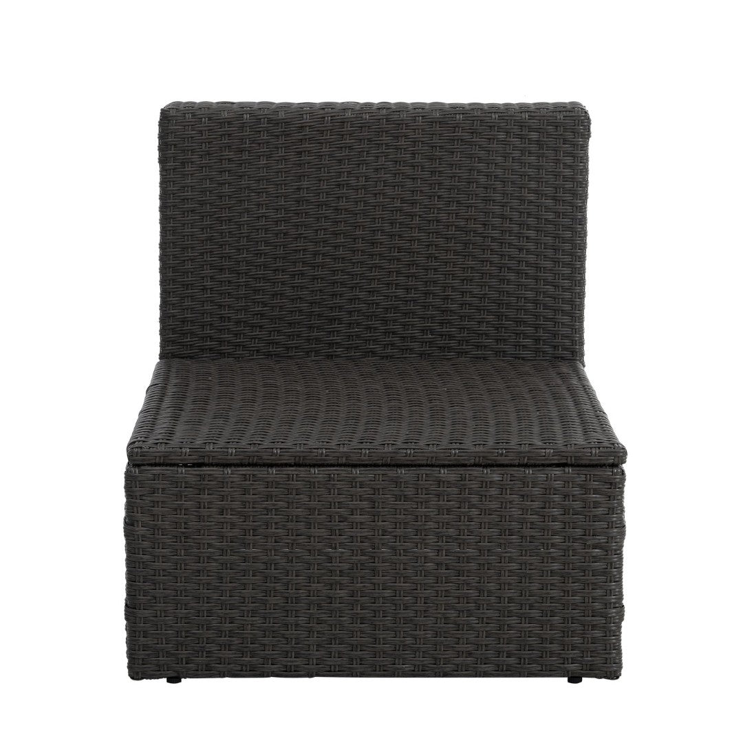 - Set Includes: Loveseat sofa, corner sofa, armless chair, ottoman, and tempered glass table — full 7-piece configuration for flexible seating arrangements.